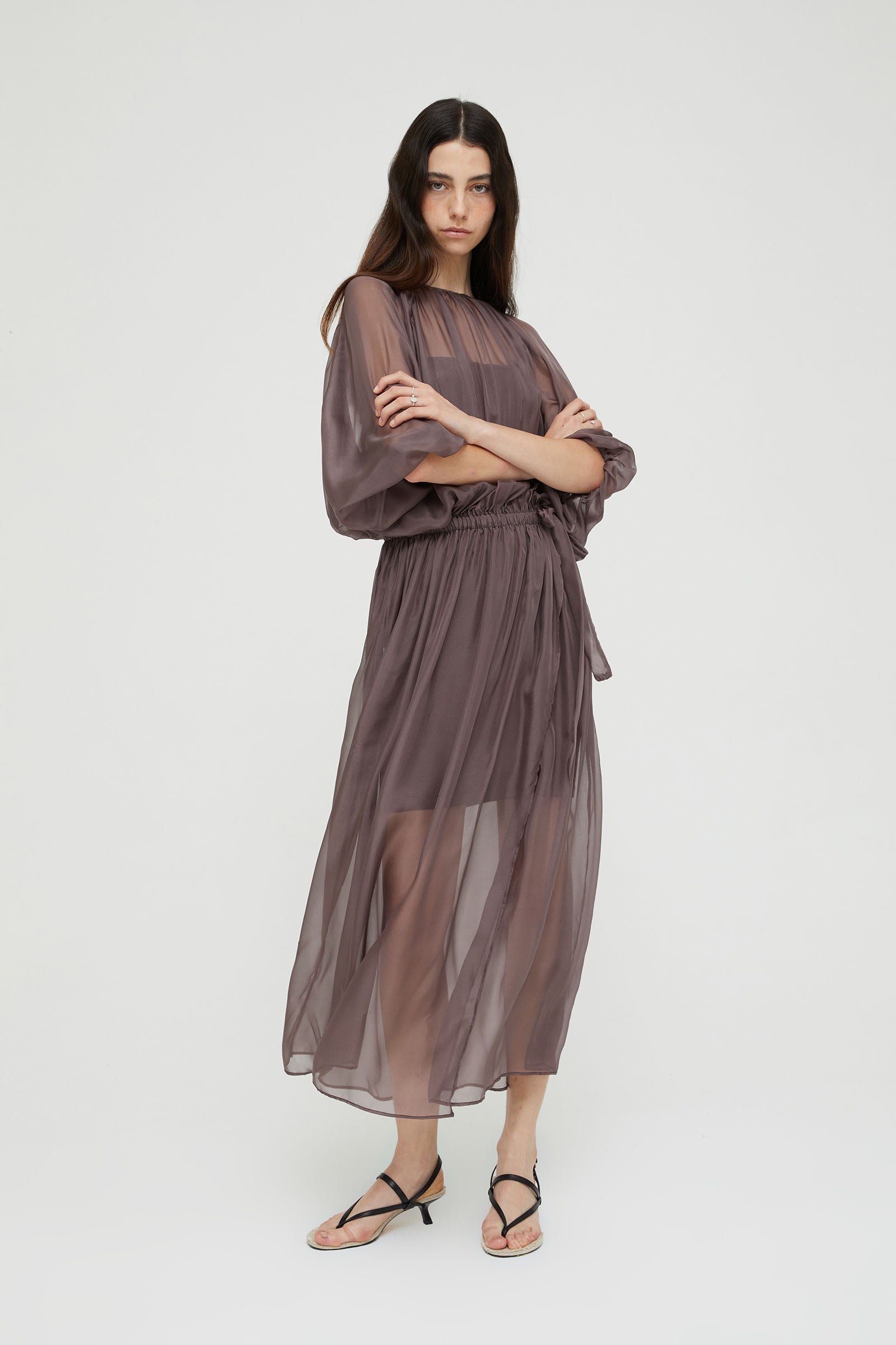 SILK CHIFFON DRESS WITH WAIST SCARF .