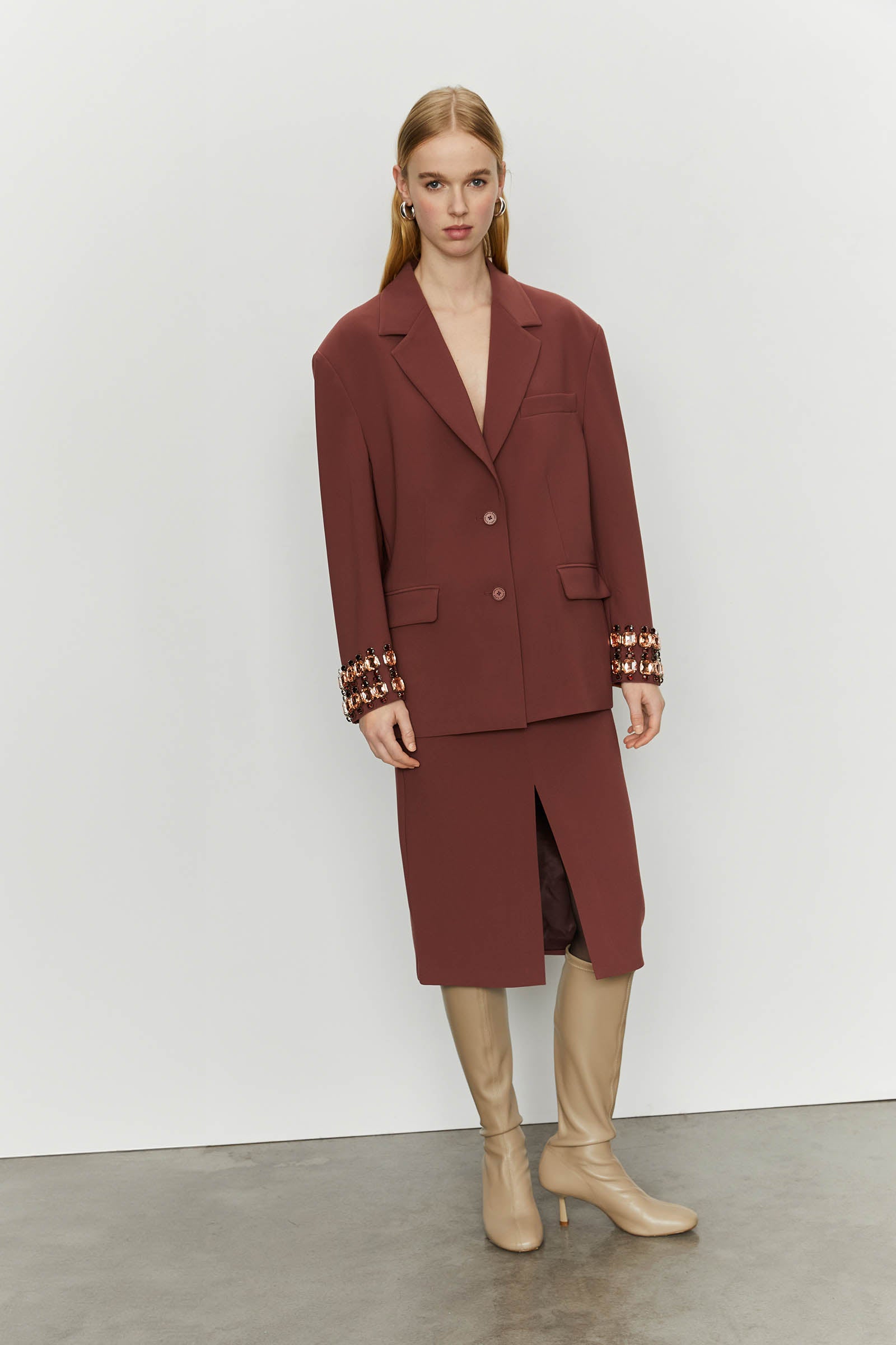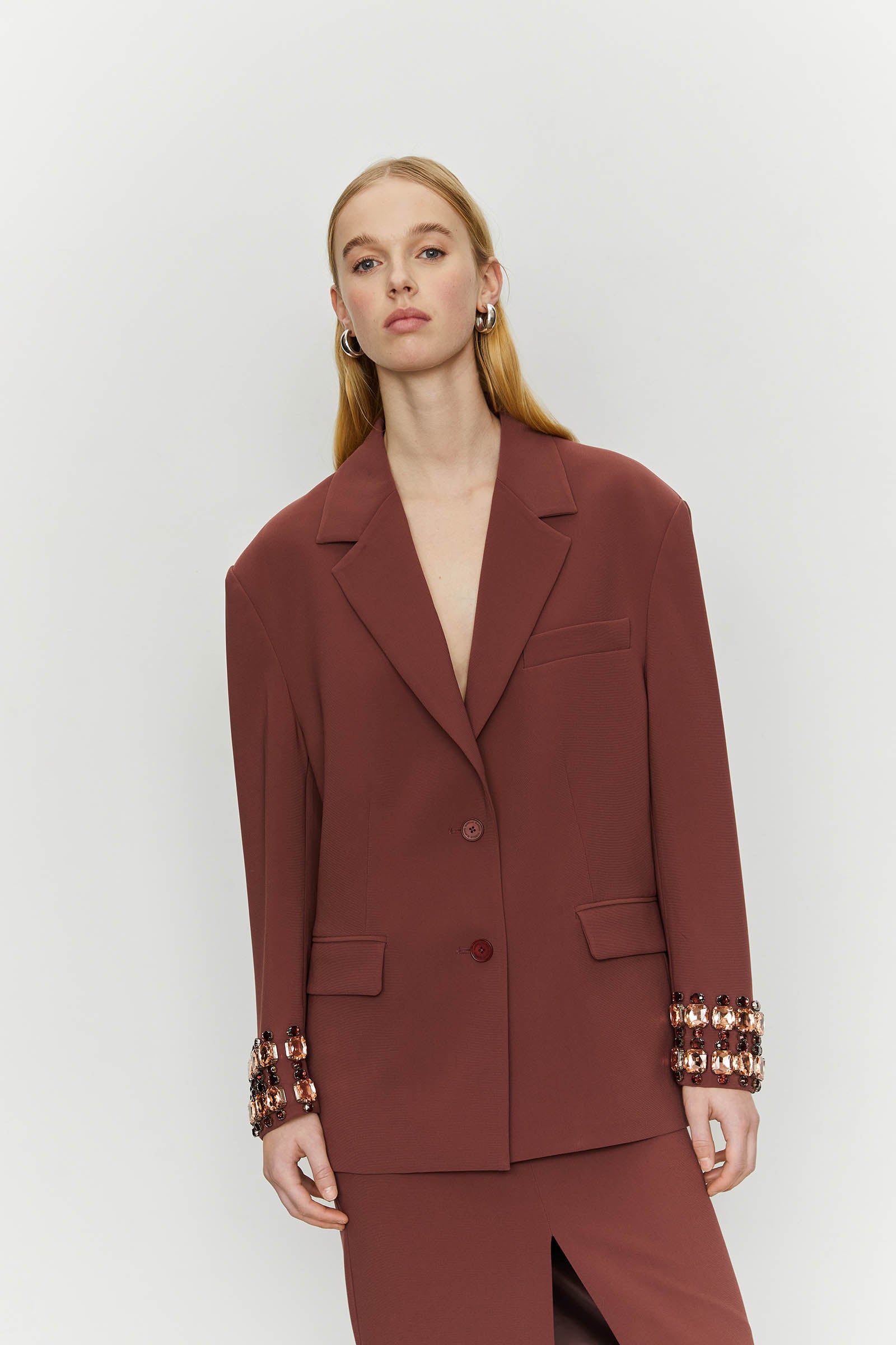 OVERSIZED BLAZER WITH STONE EMBROIDERY ON THE WRIST.