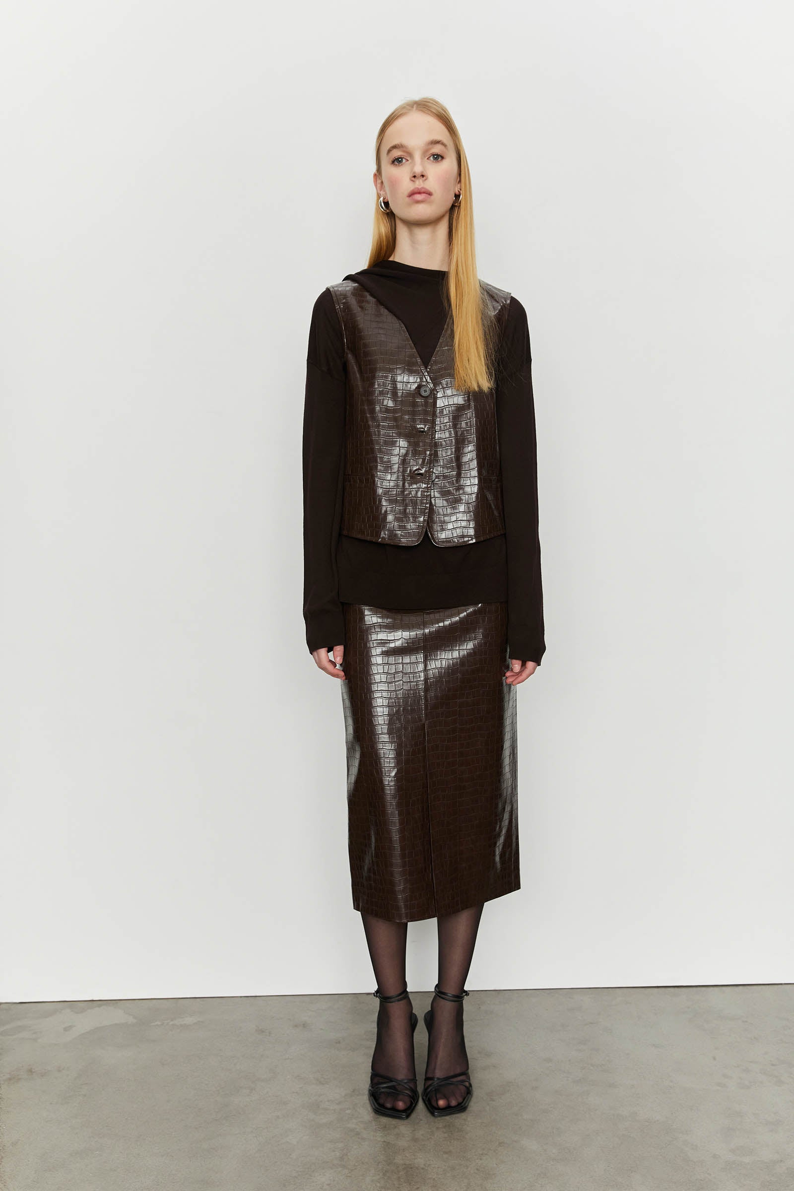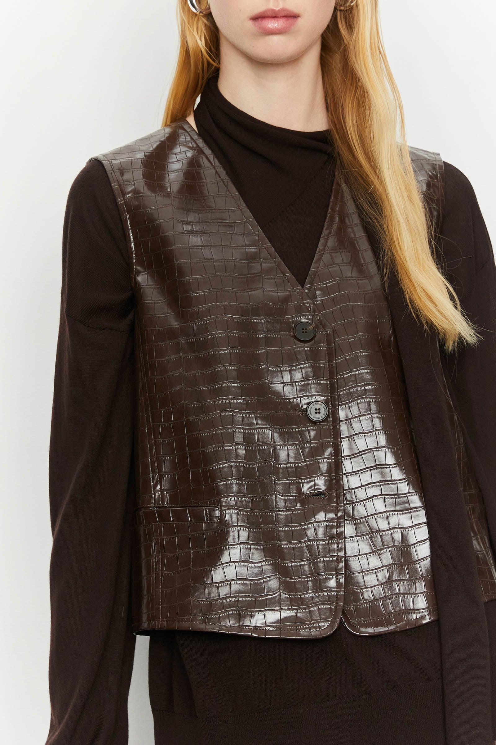 ECO-LEATHER VEST WITH "COCCO" PRINT.