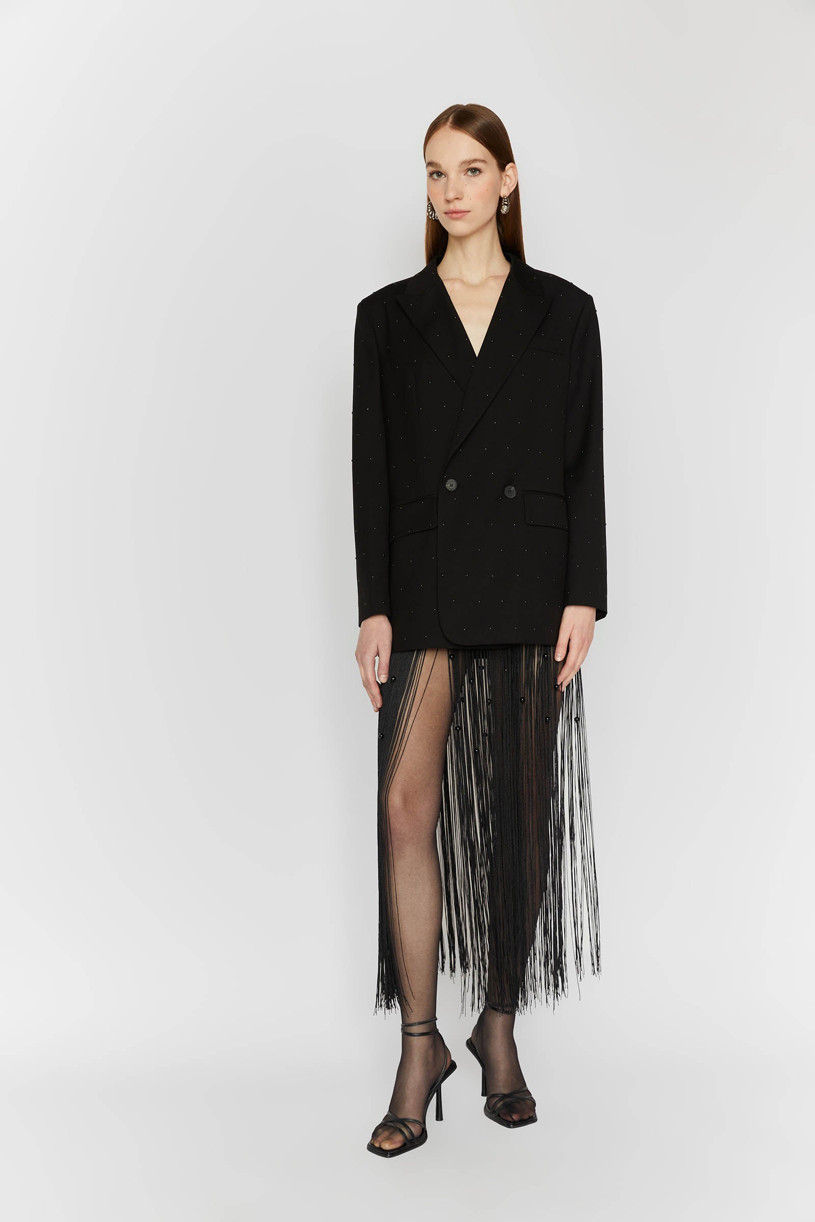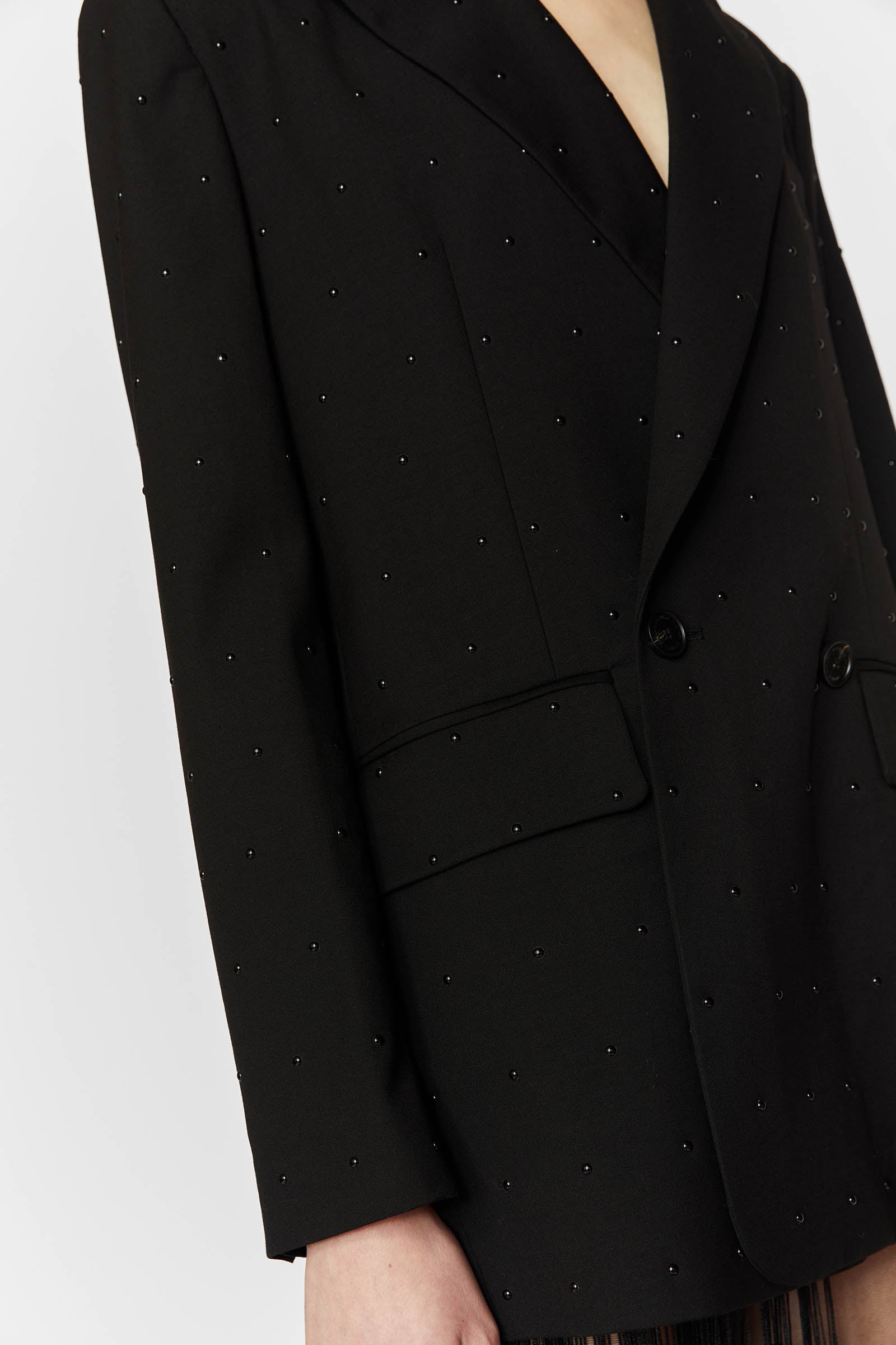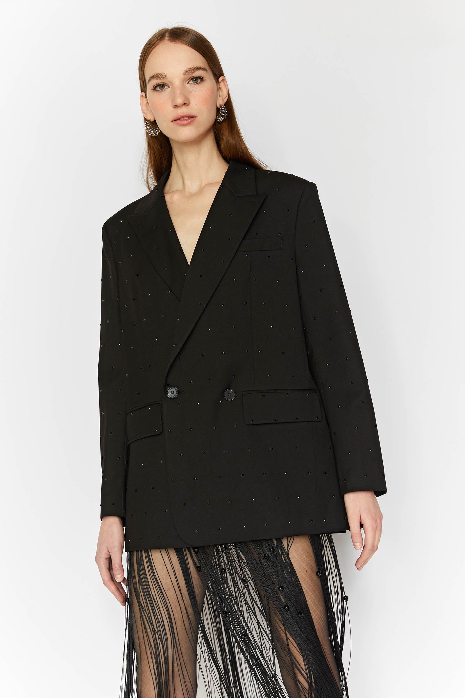 DOUBLE-BREASTED BLAZER WITH BLACK STUDS.