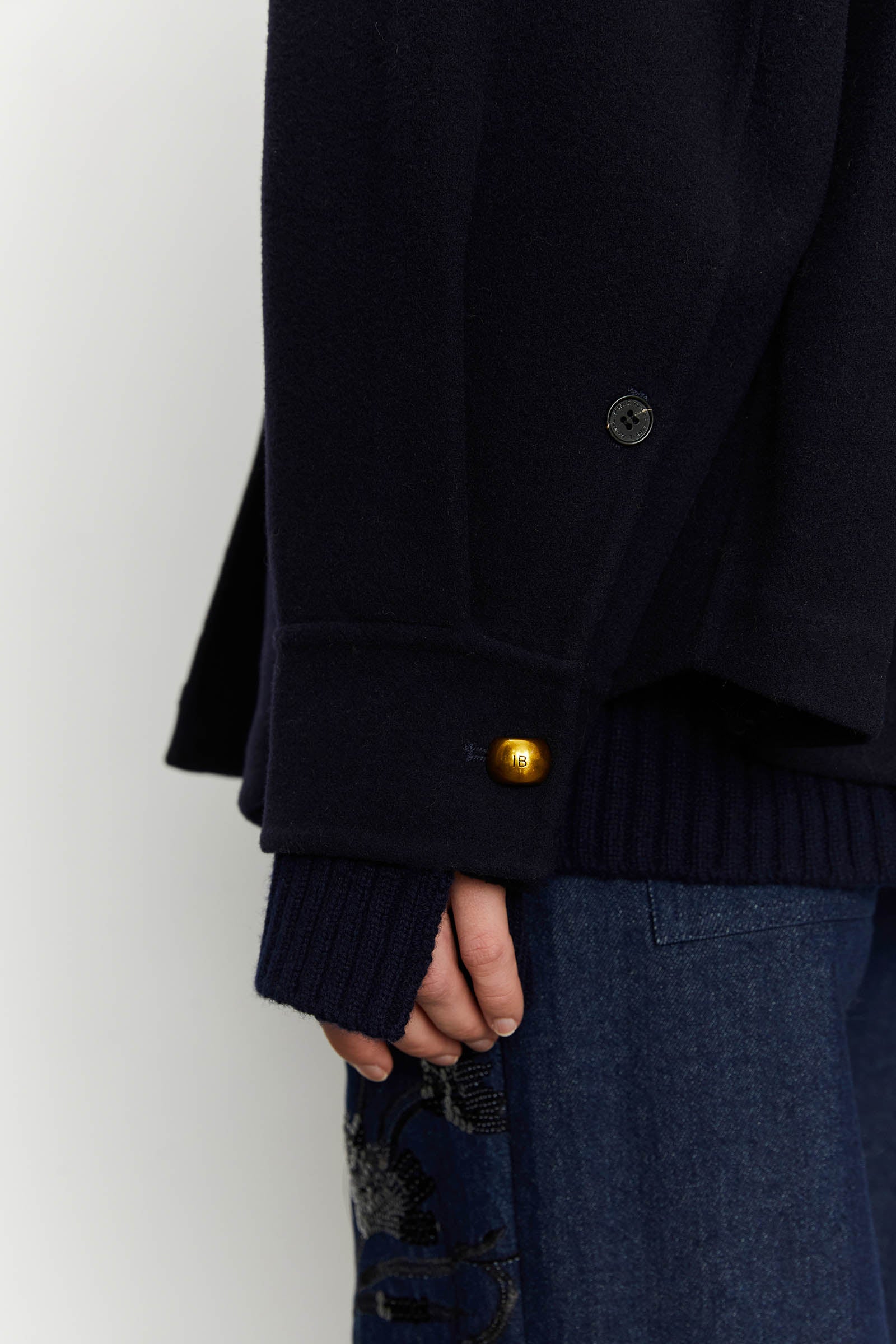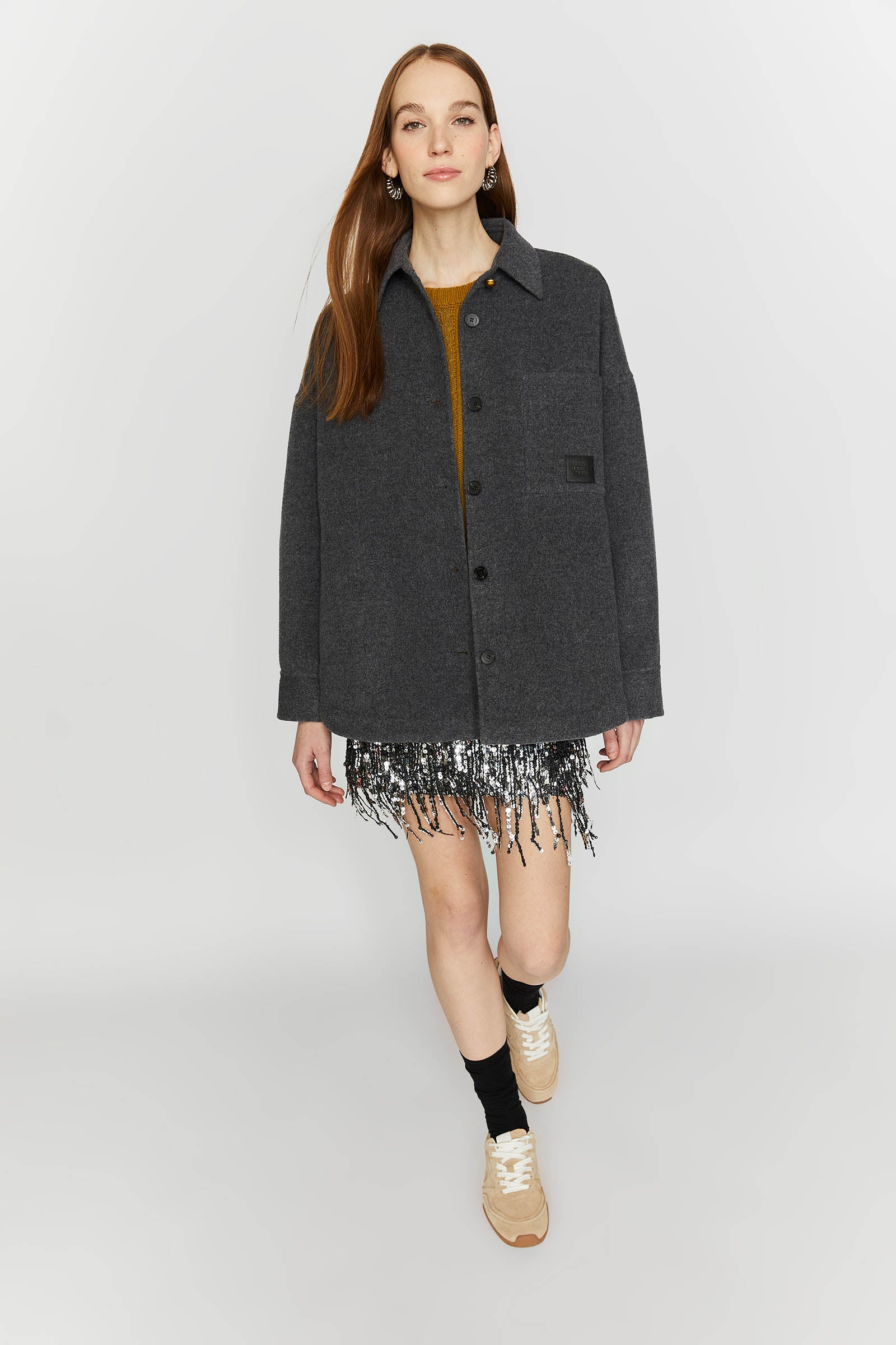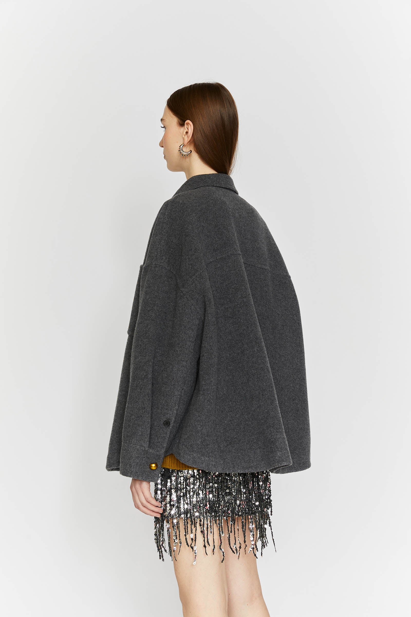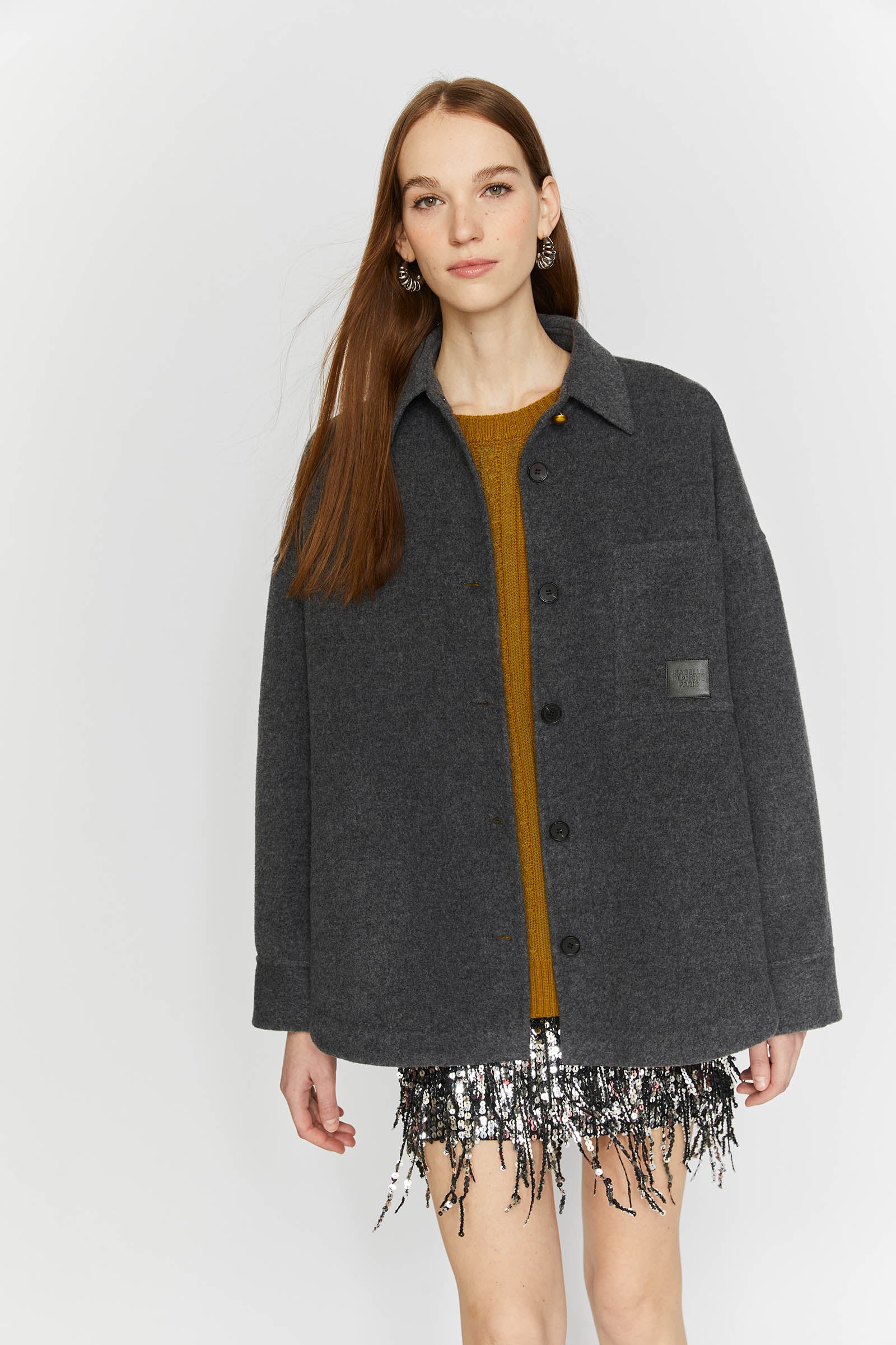 COAT CHEMISIER IN DOUBLE WOOL FABRIC WITH LEATHER PATCHES.
