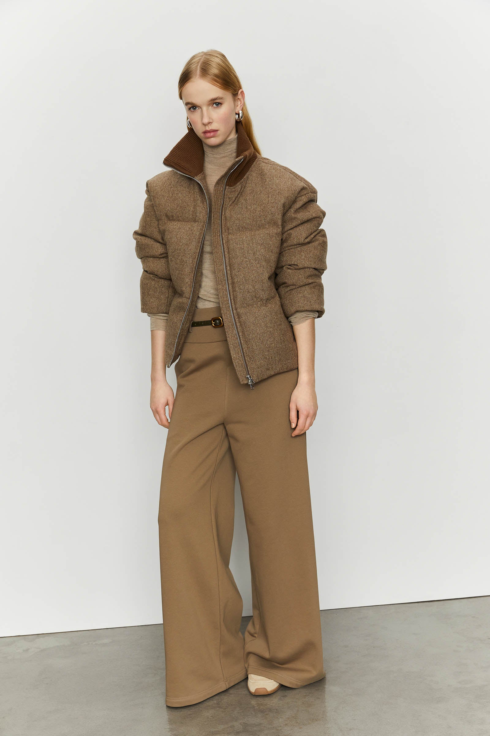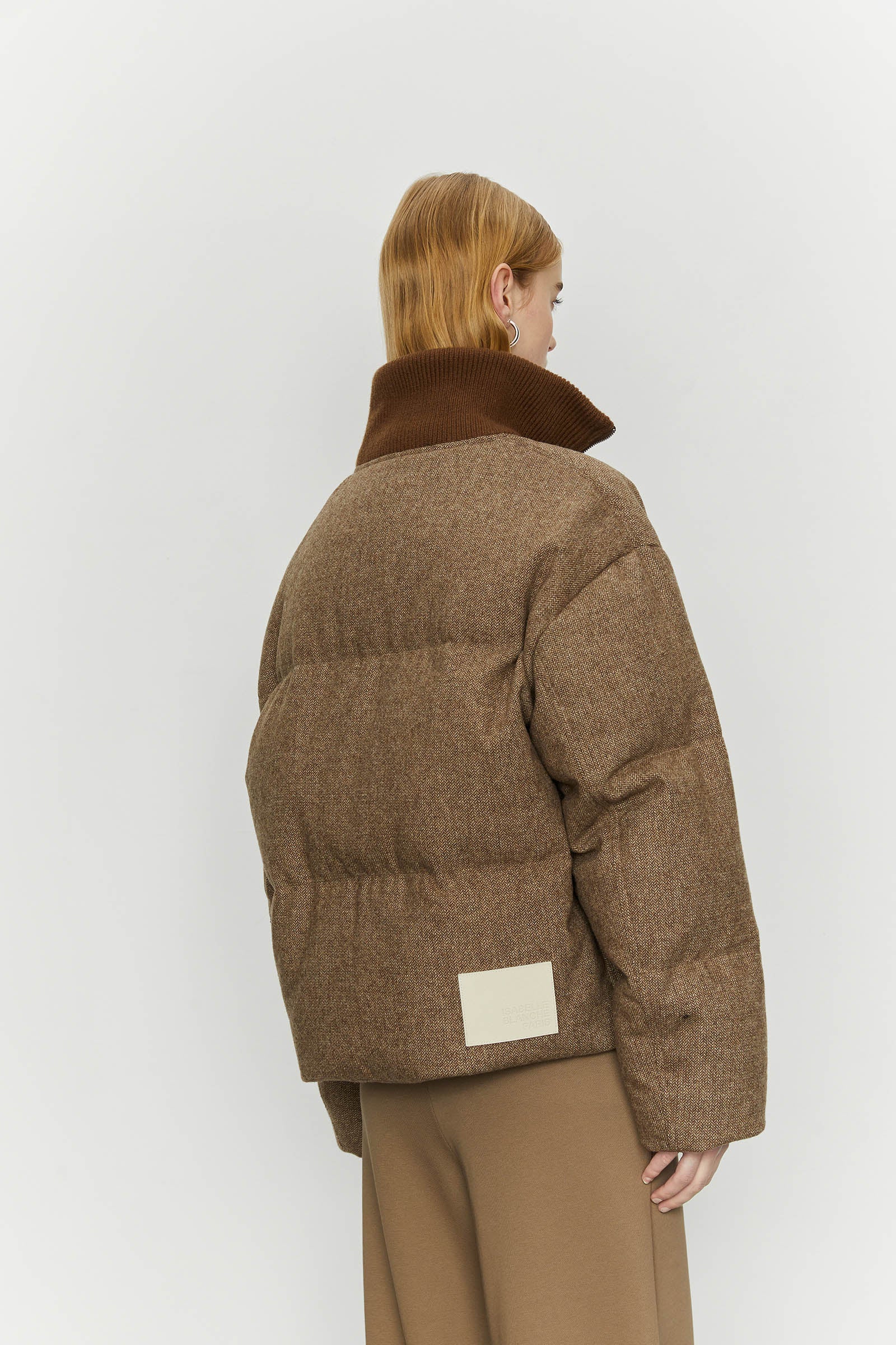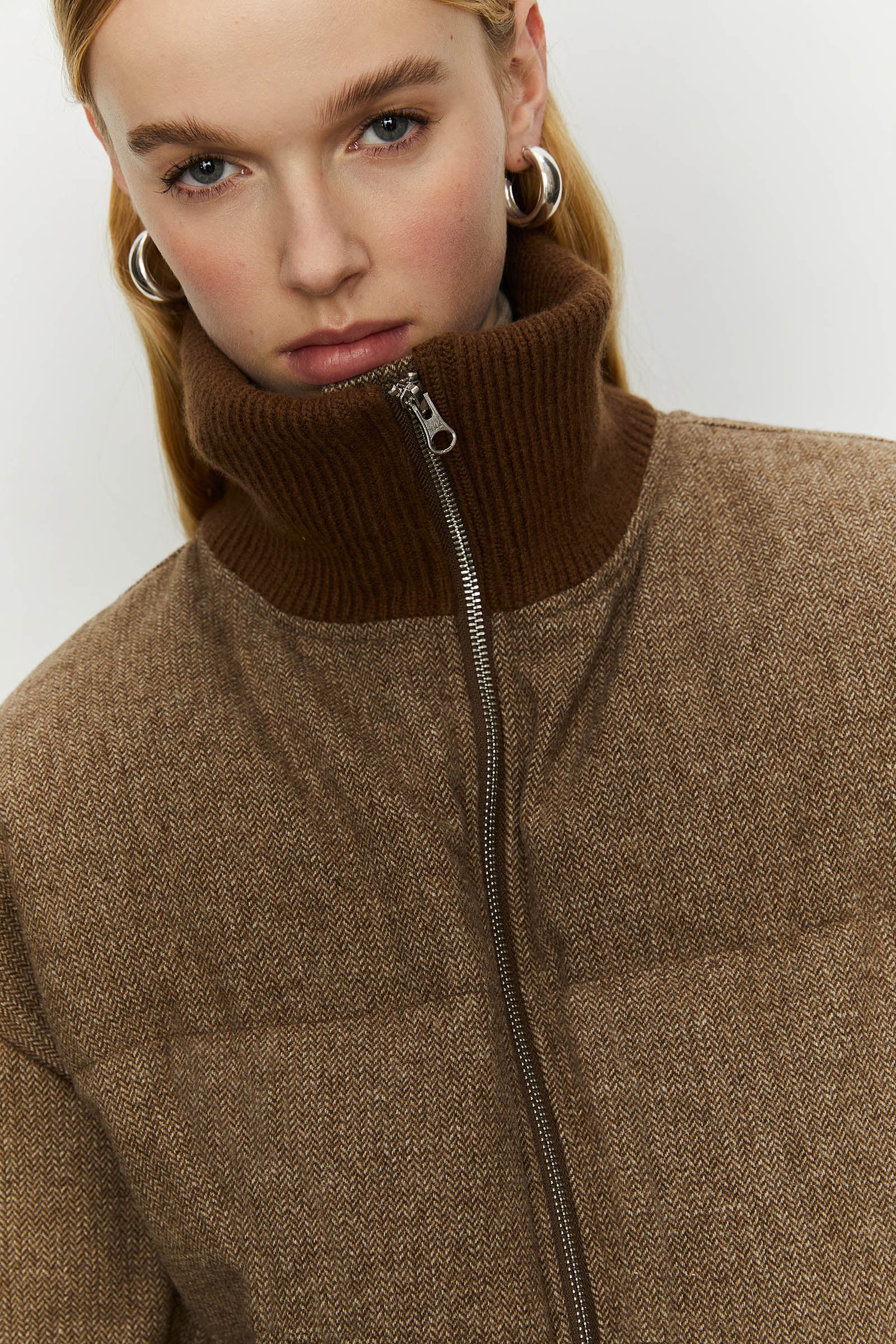 WOOL DOWN JACKET WITH KNITTED COLLAR.