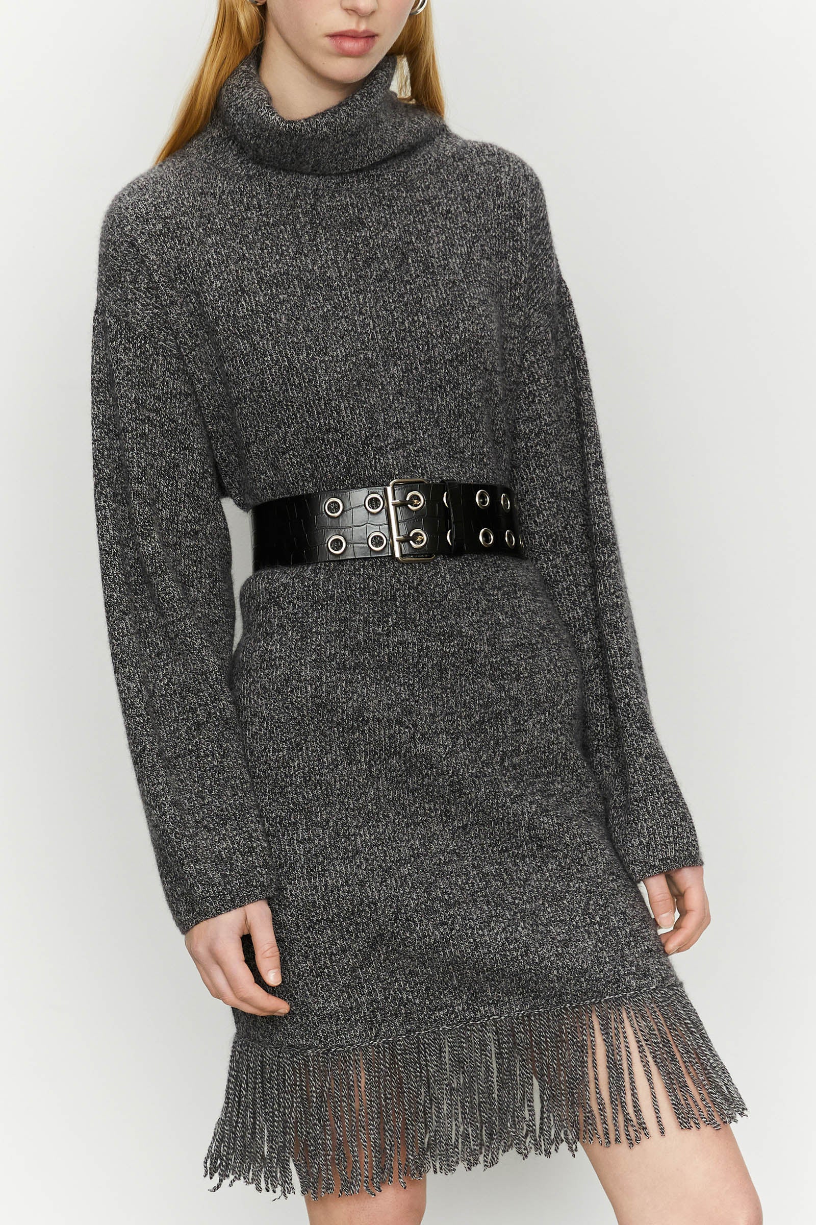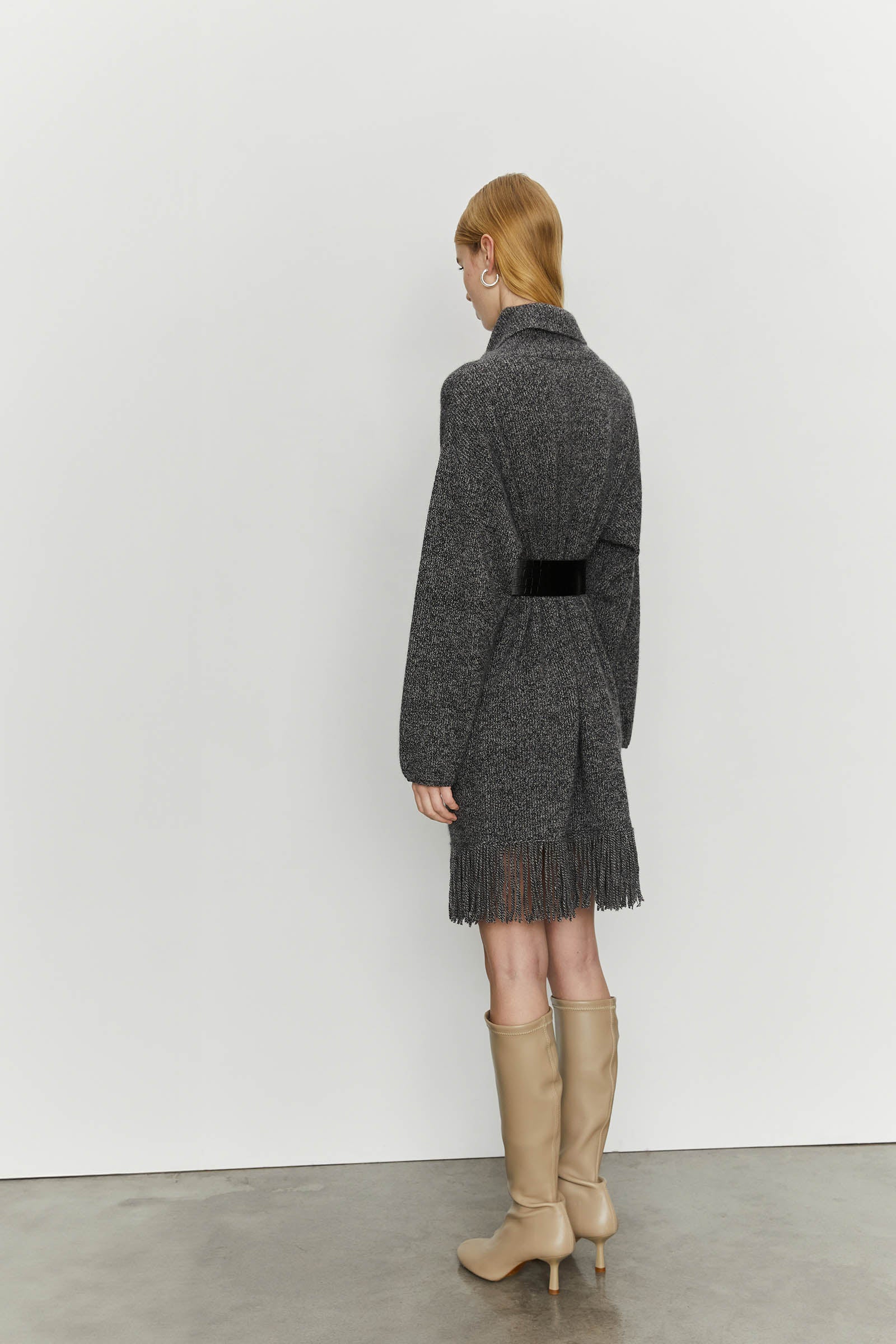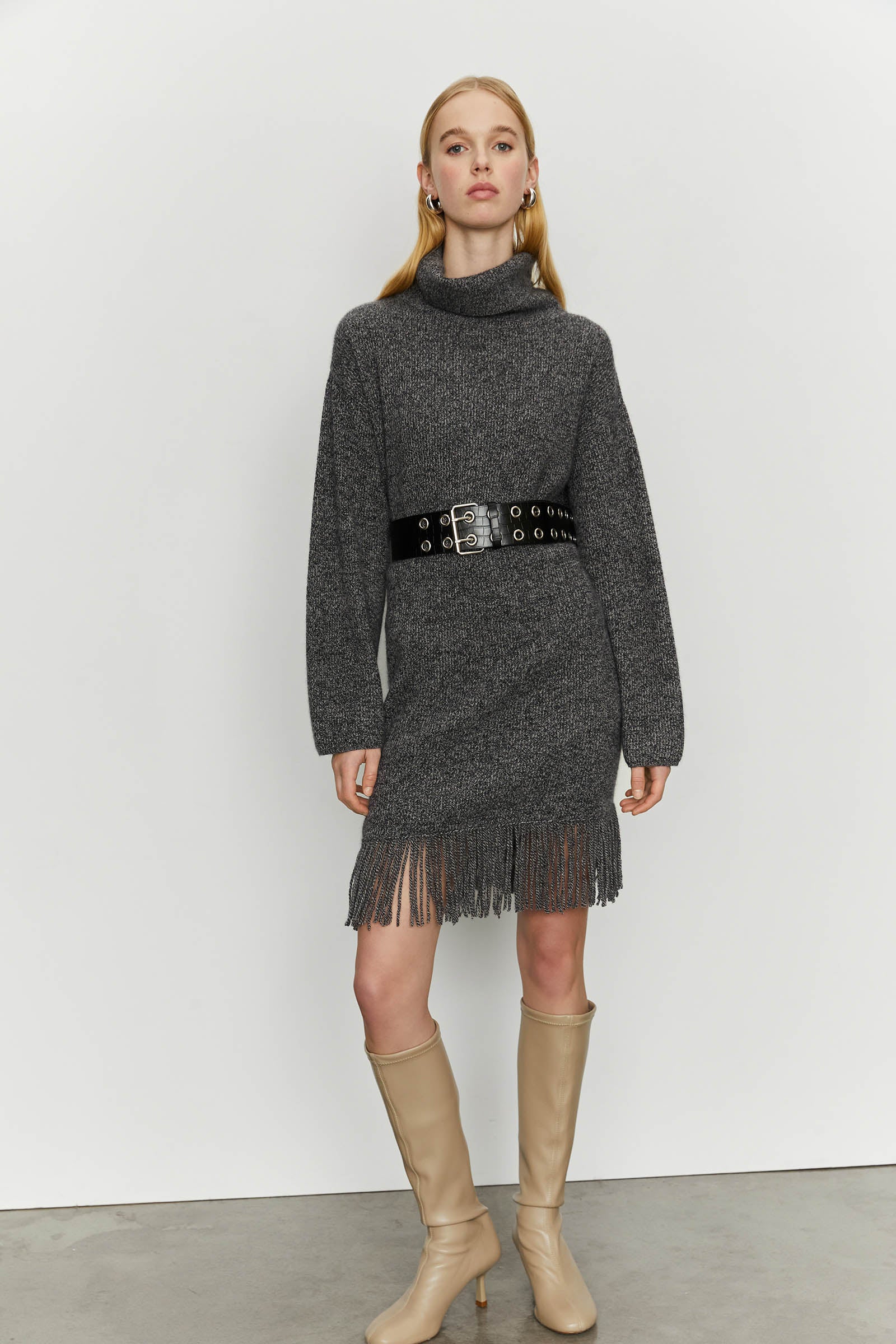 KNITTED DRESS WITH FRINGE DETAIL AT THE BOTTOM.