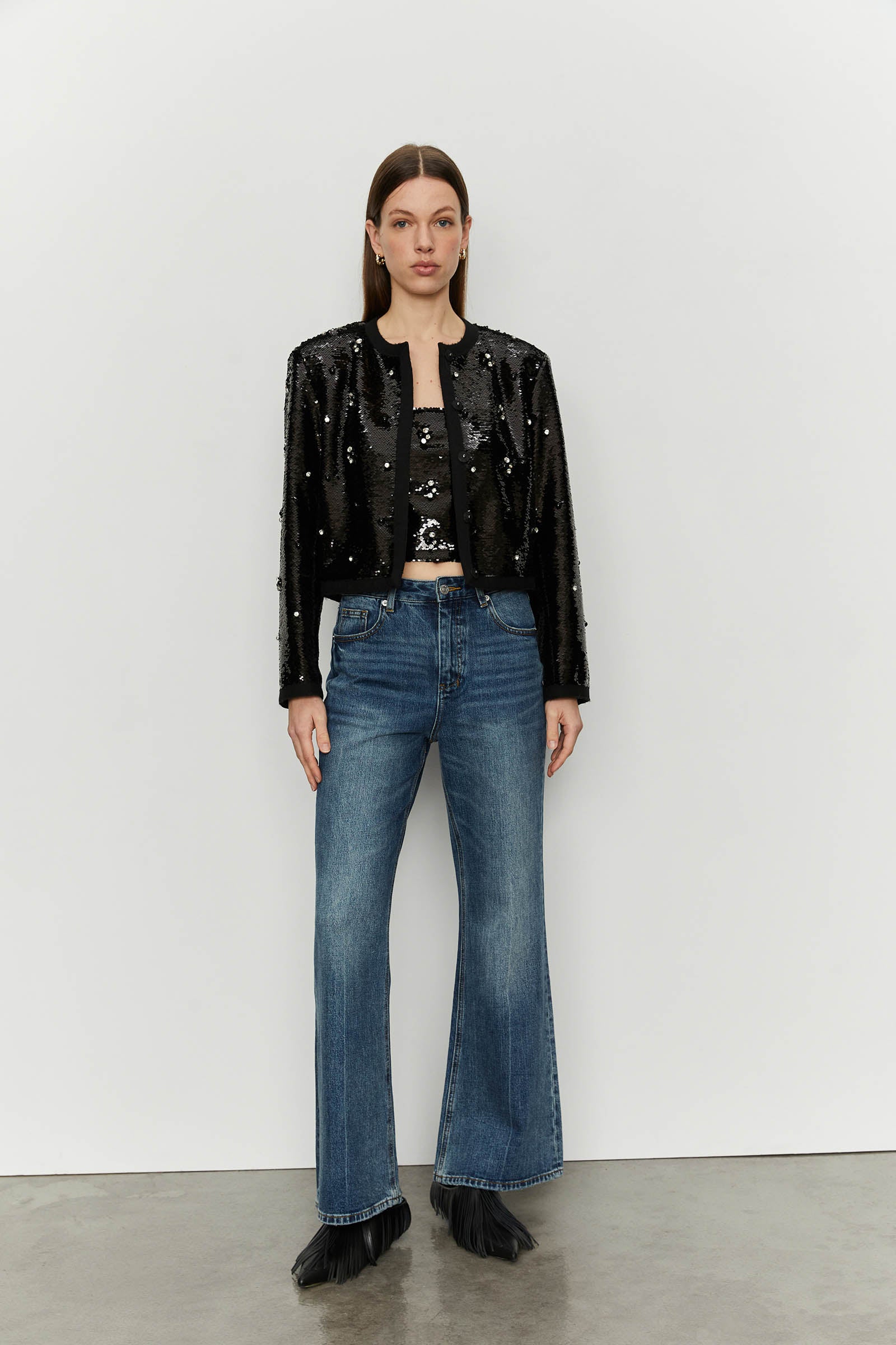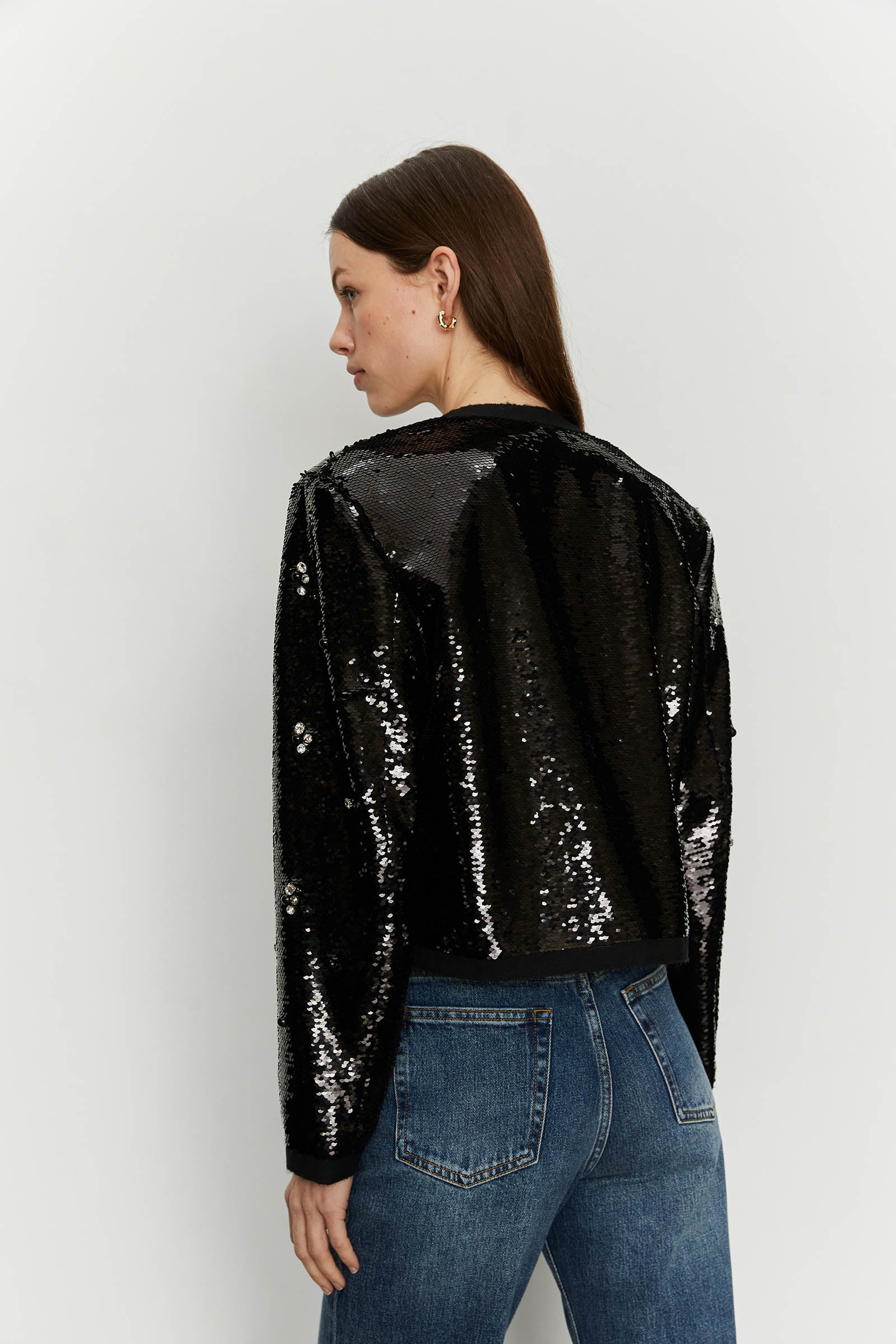 SEQUINED JACKET WITH STONE EMBROIDERY.