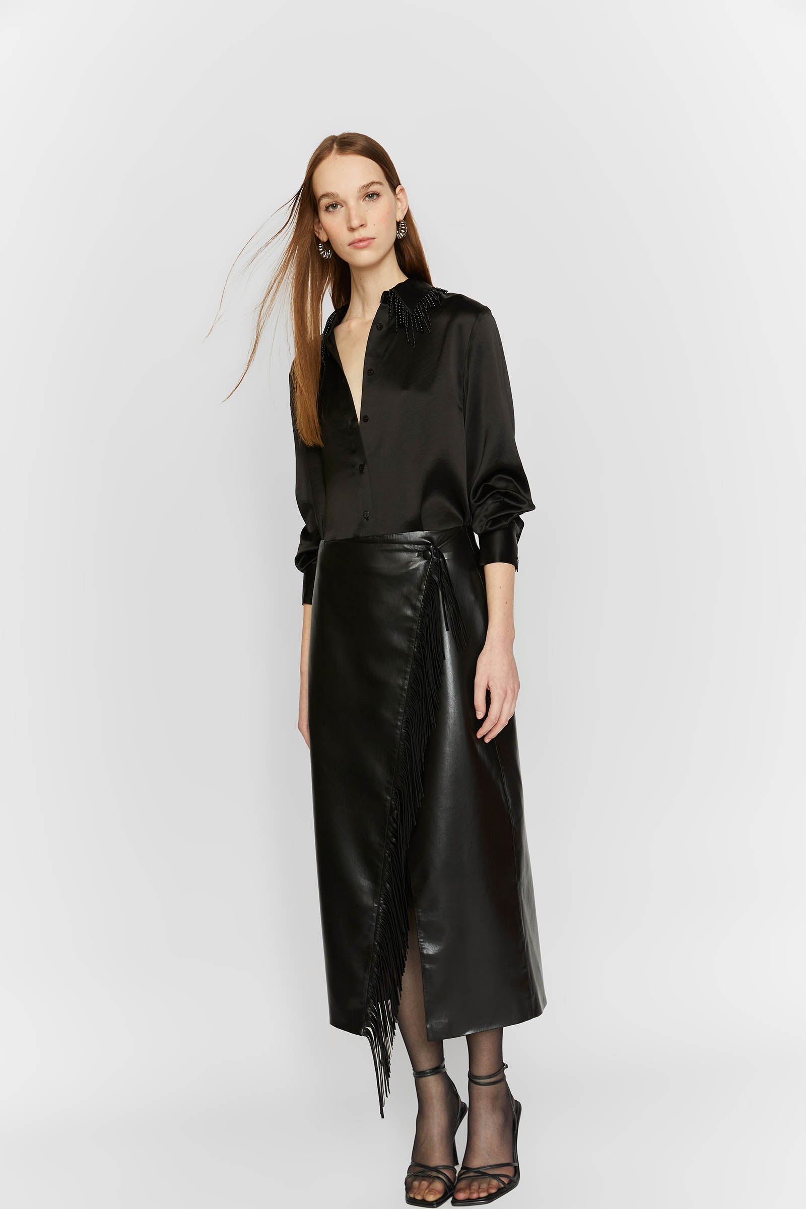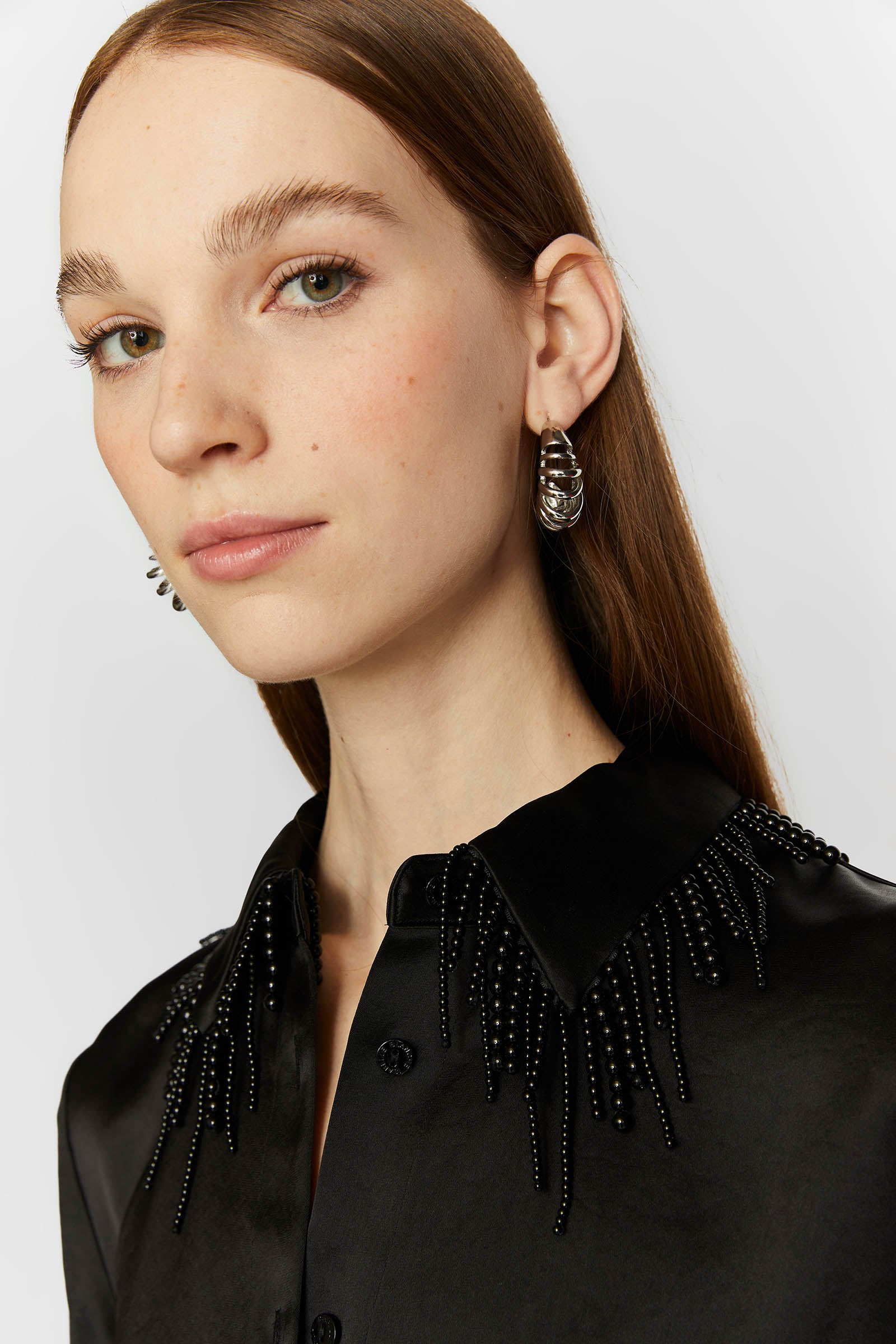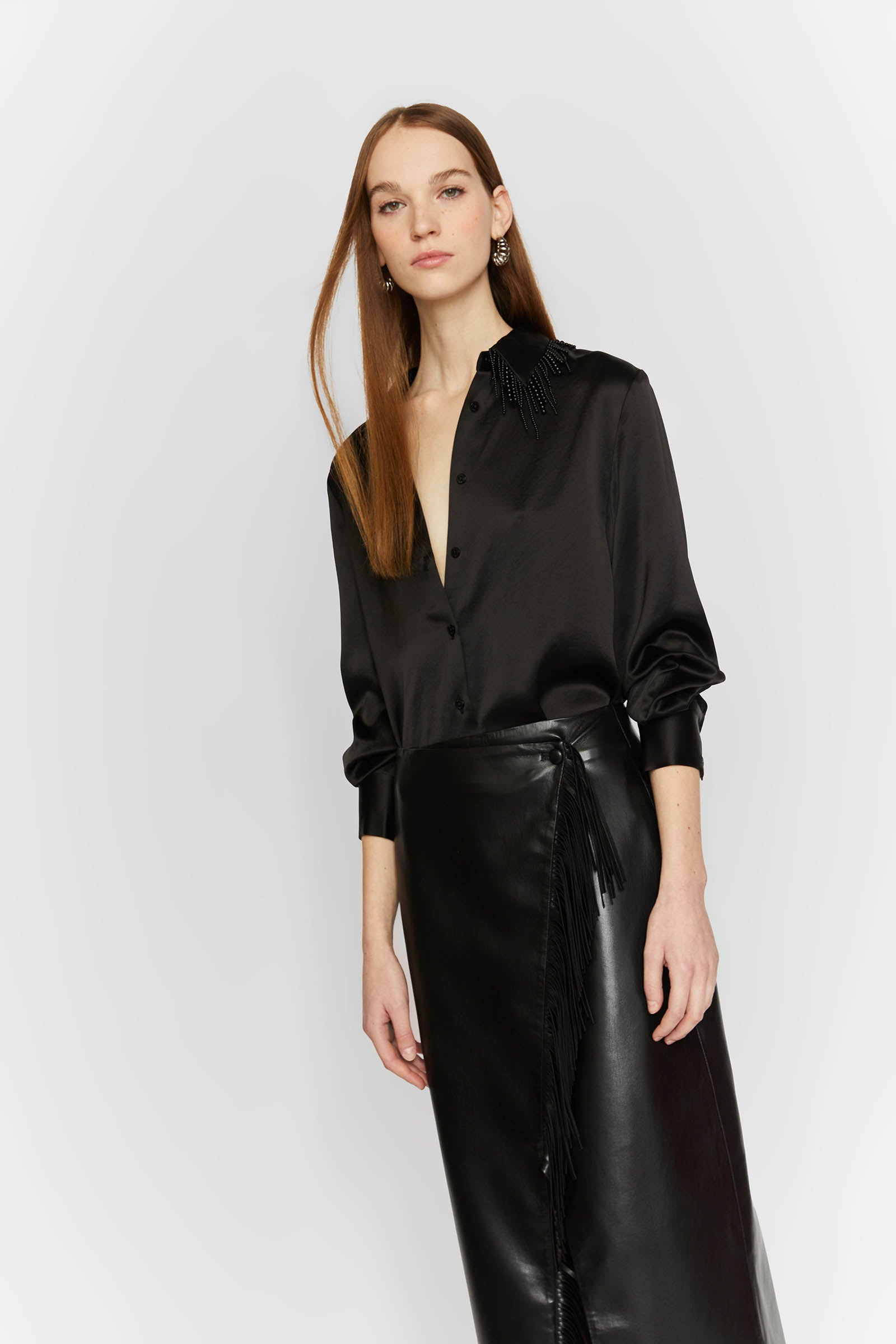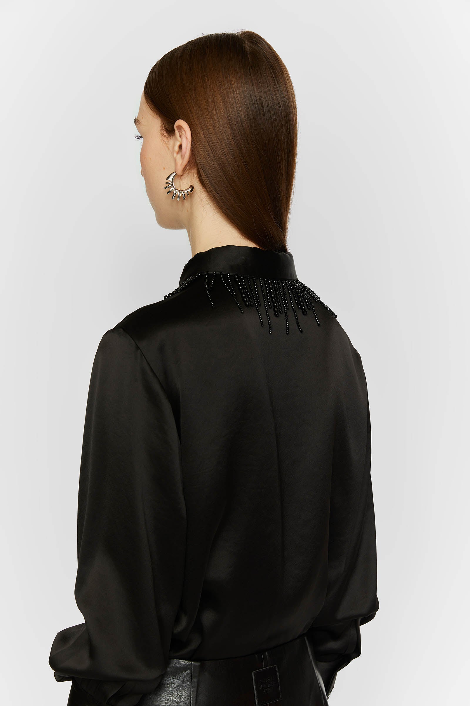 ACETATE SATIN SHIRT WITH PEARL FRINGES.