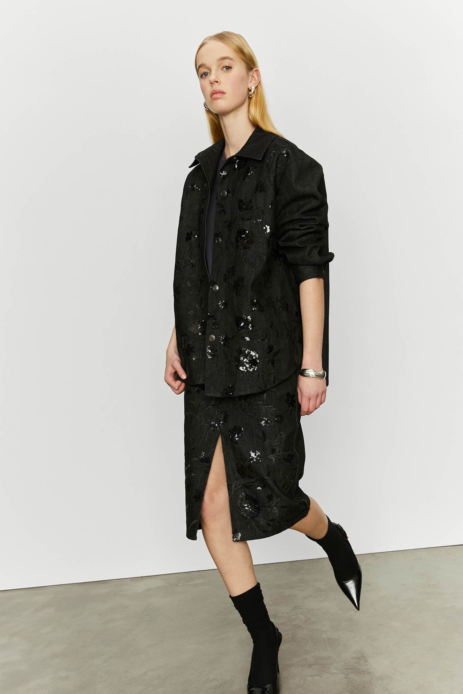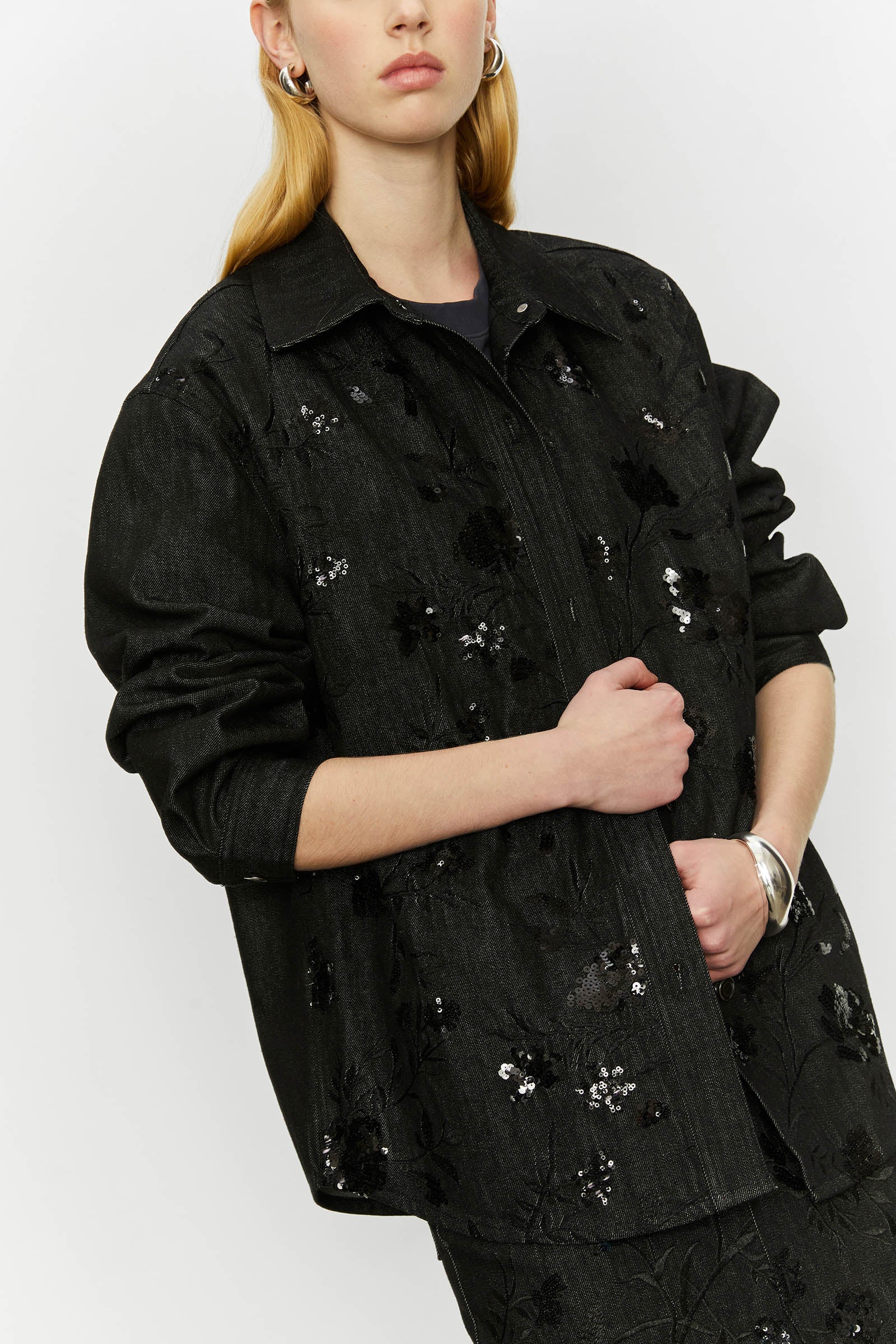 DENIM SHIRT WITH EMBROIDERY ON THE FRONT.
