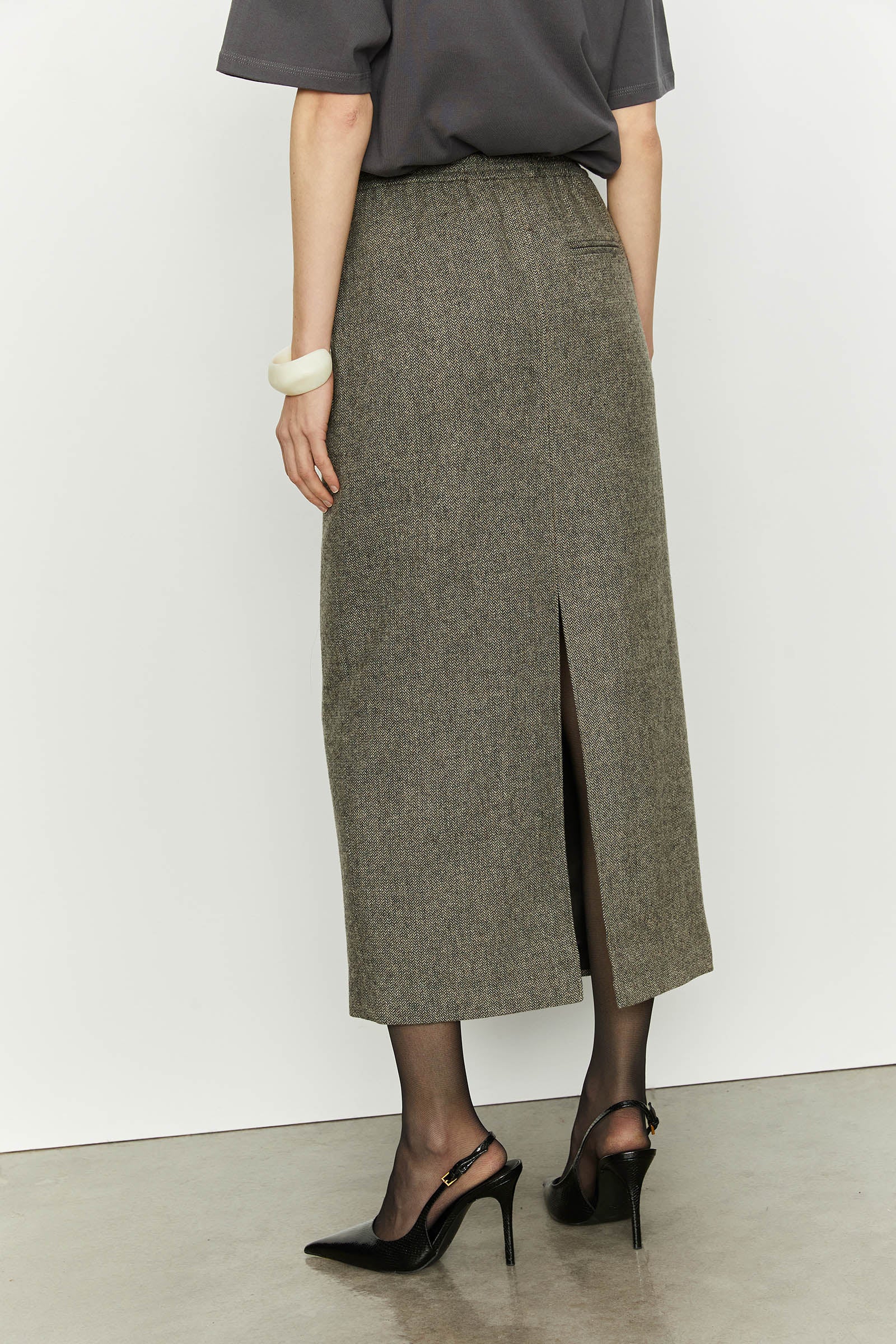 WOOL MIDI SKIRTS WITH ELASTIC WAISTBAND.
