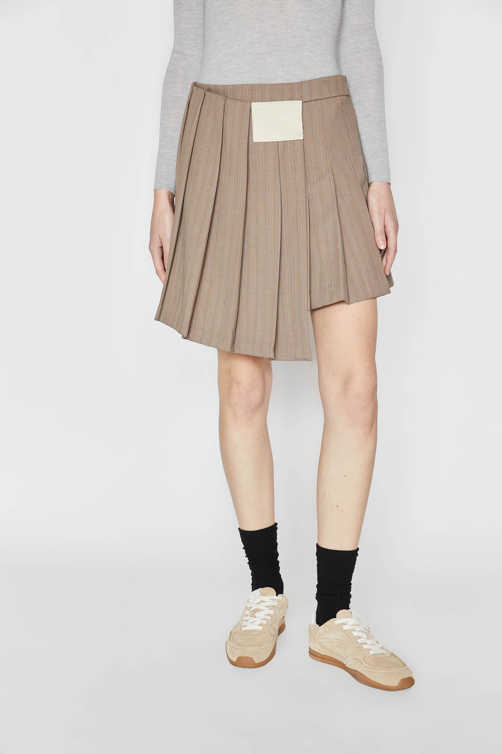 PLEATED MINI SKIRT WITH LEATHER PATCH.