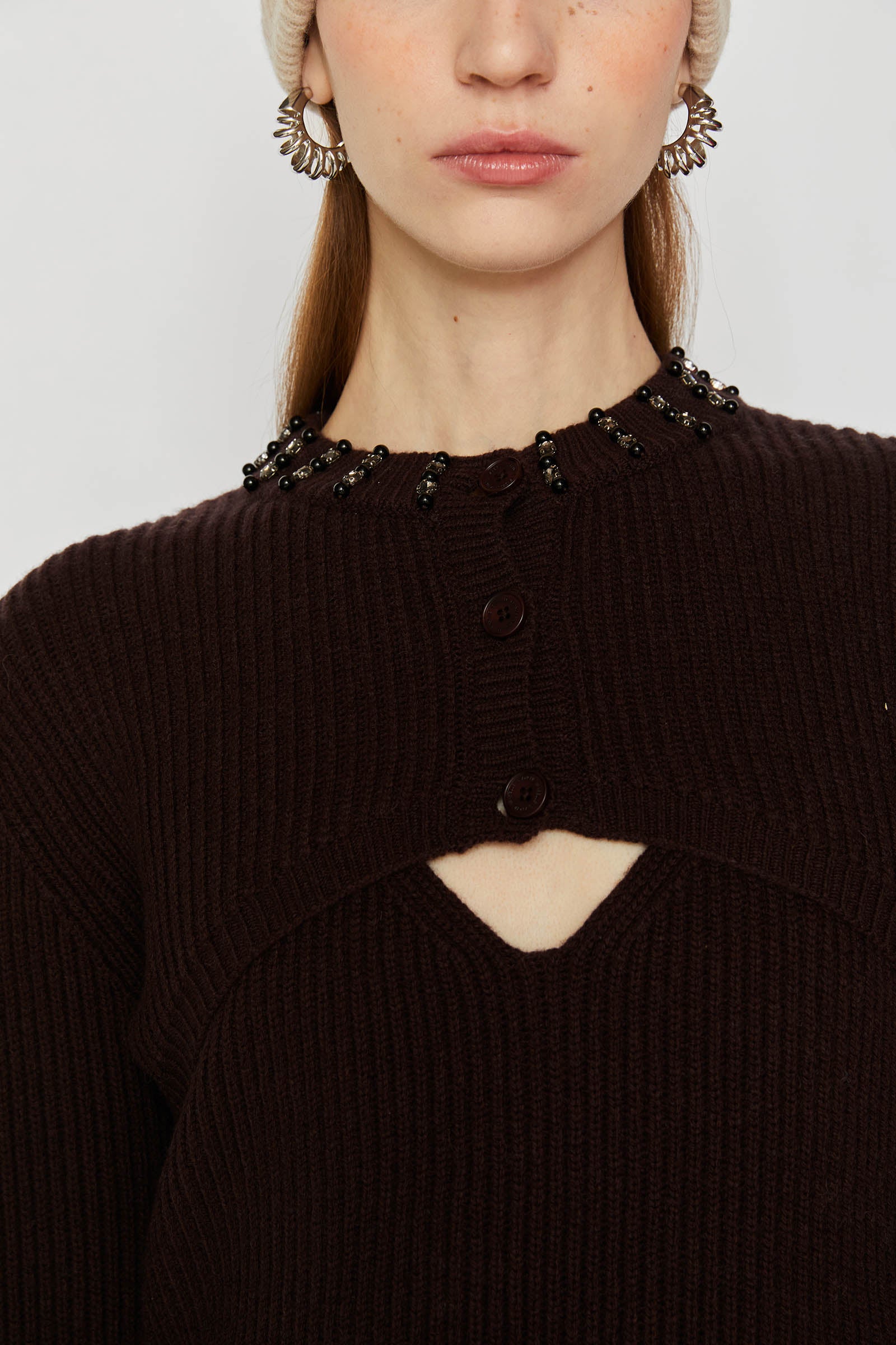 KNITTED TOP AND SHOULDER SHRUG WITH EMBROIDERY.