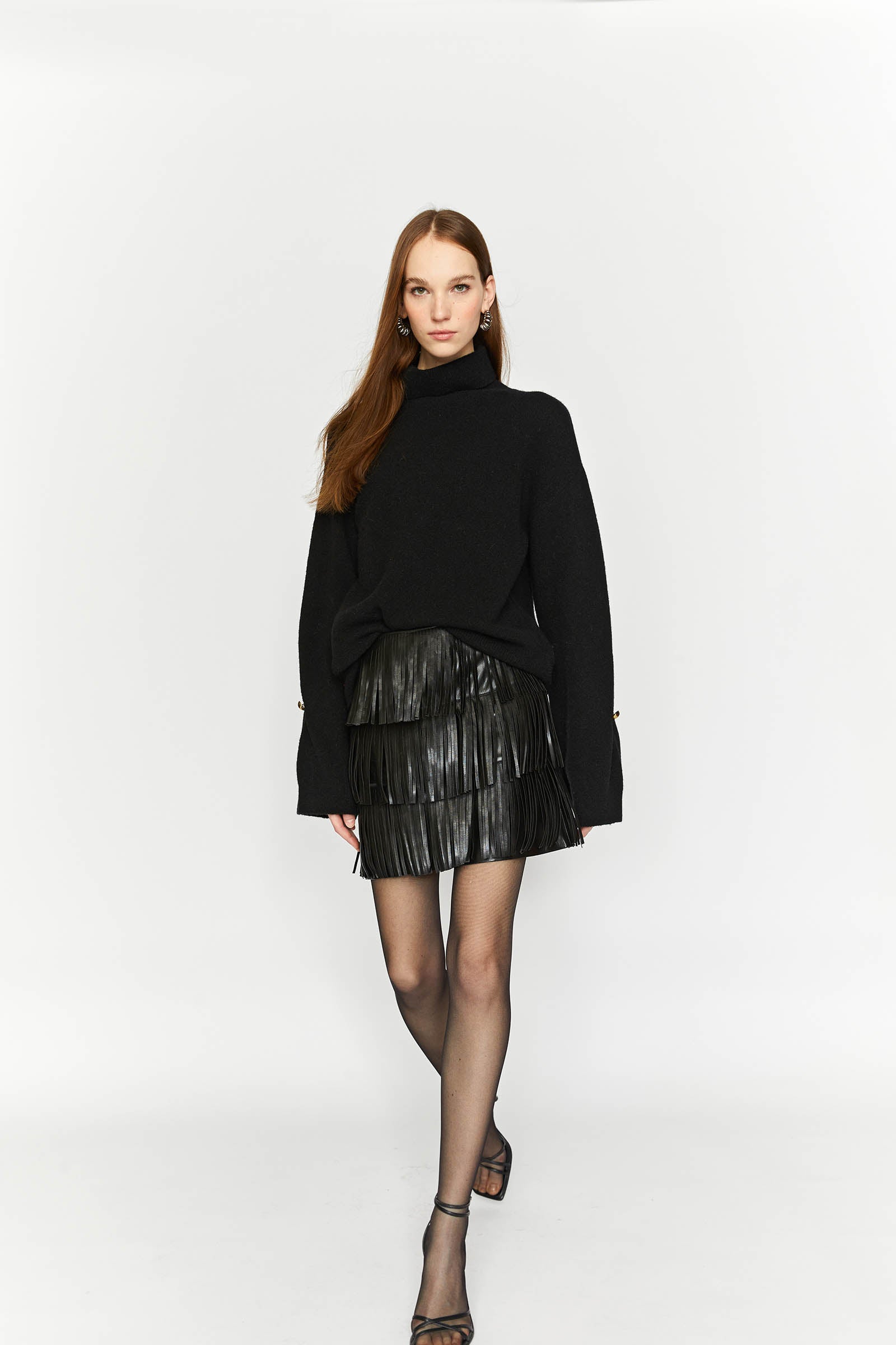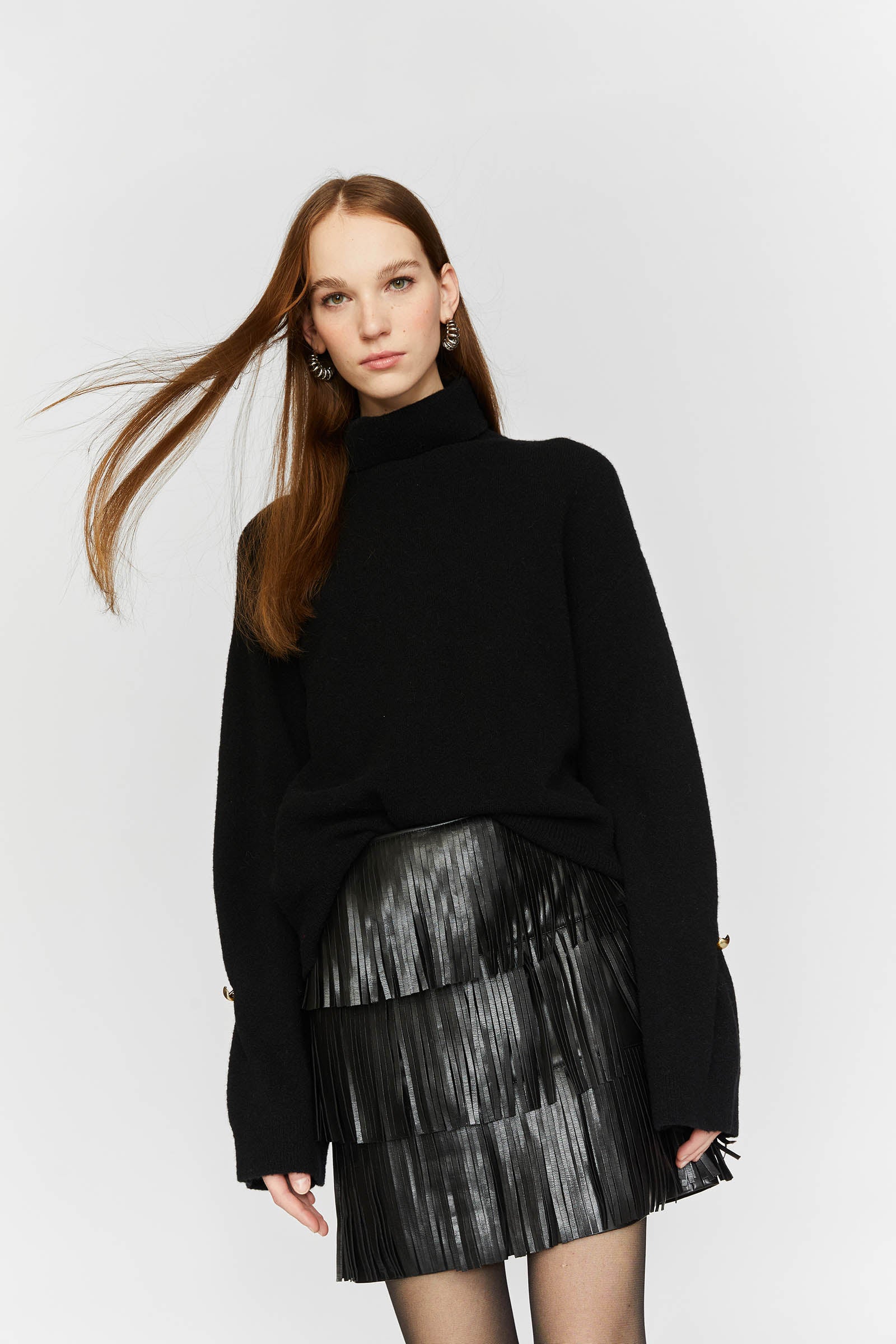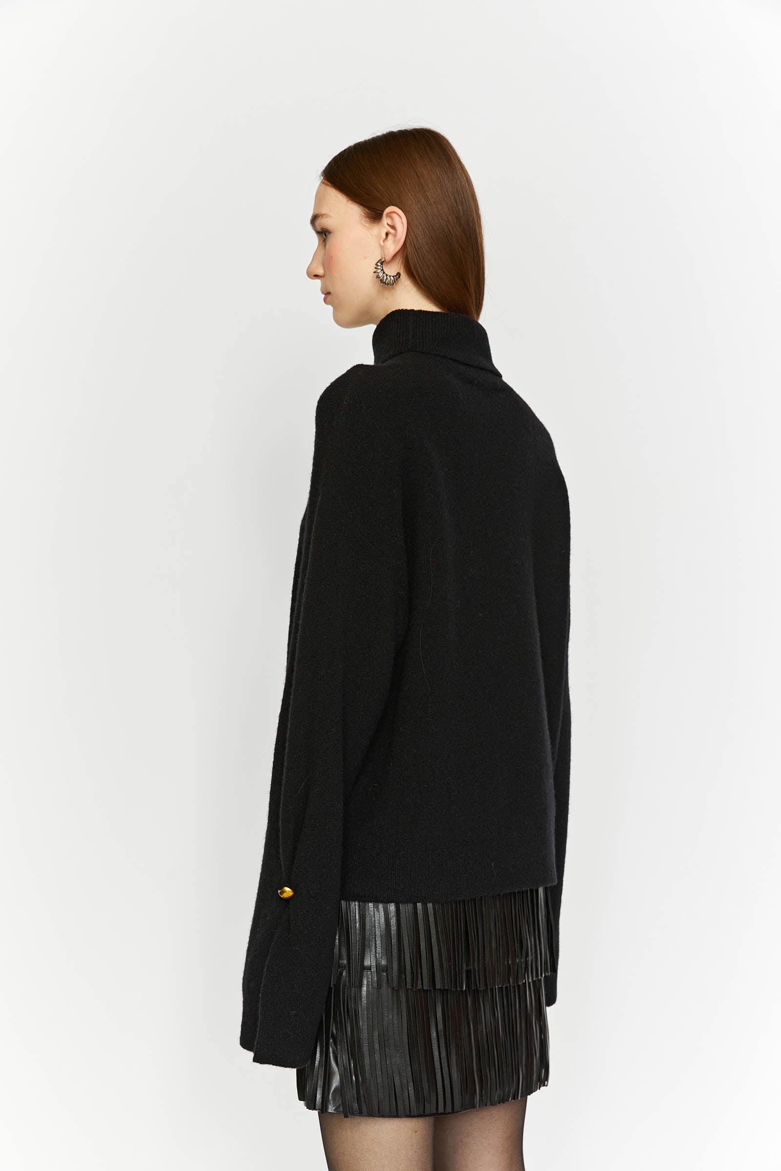 TURTLENECK SWEATER WITH BUTTON DETAIL ON THE CUFF.