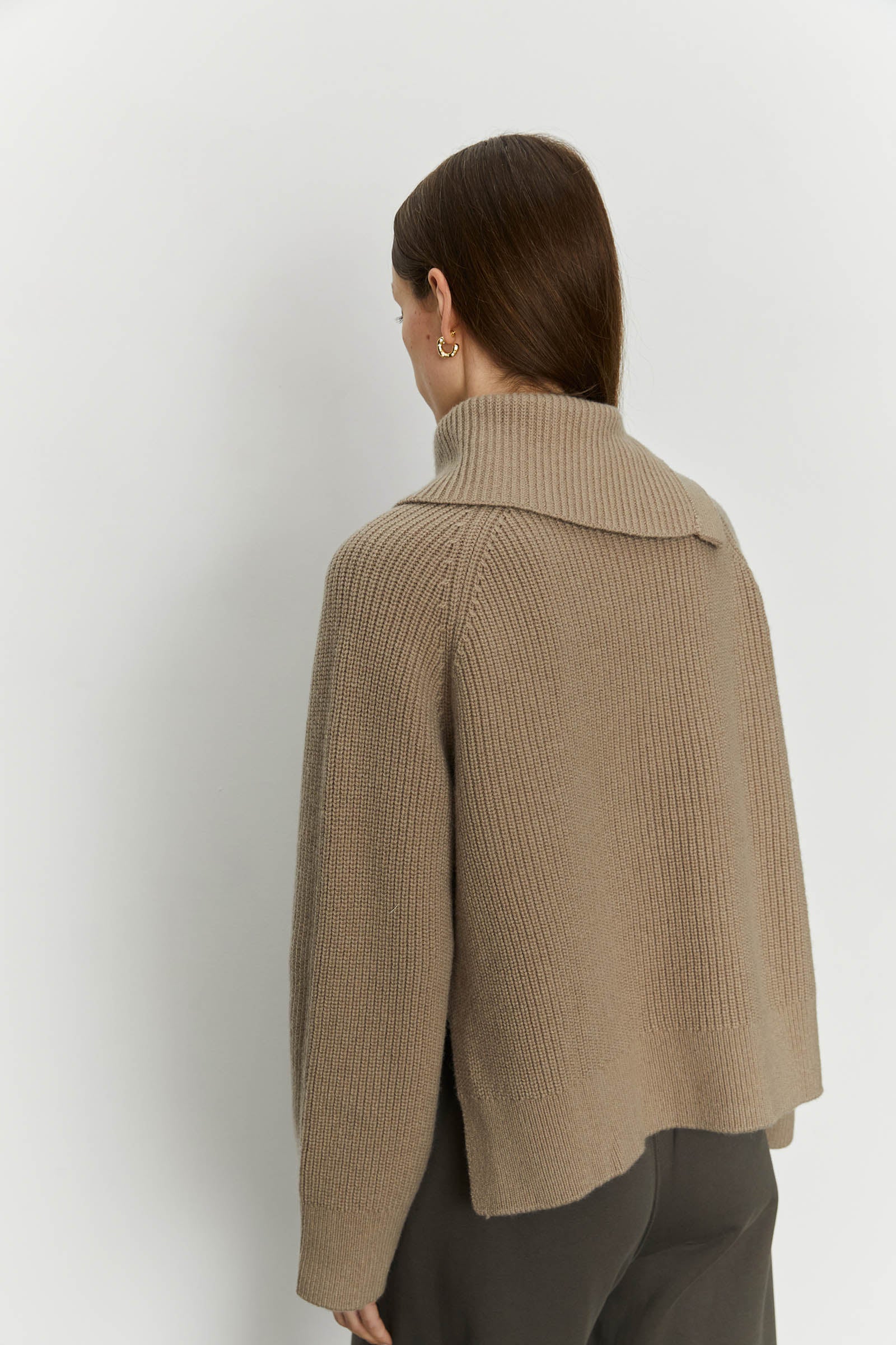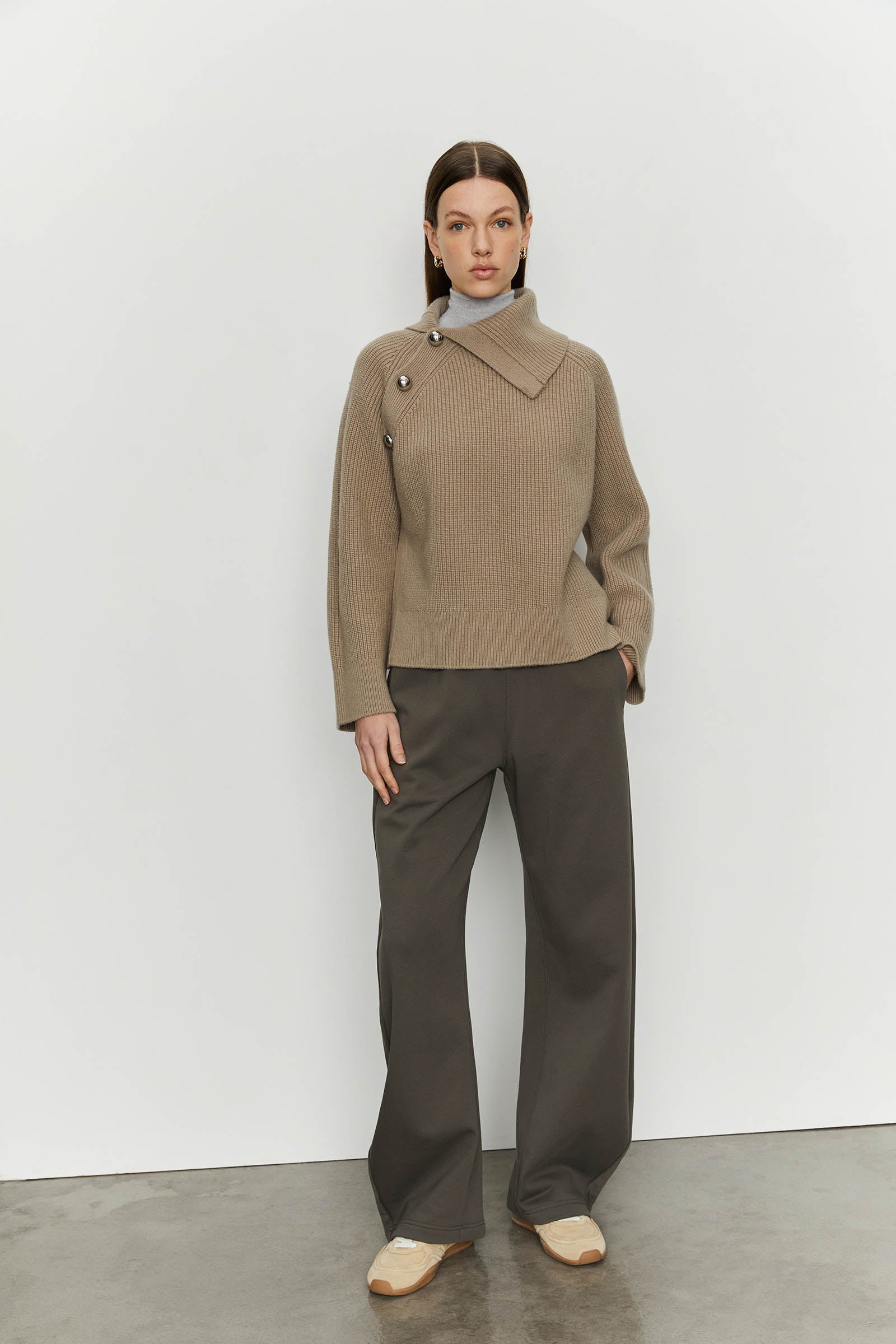 RIB STITCH SWEATER WITH SIDE BUTTON DETAIL.