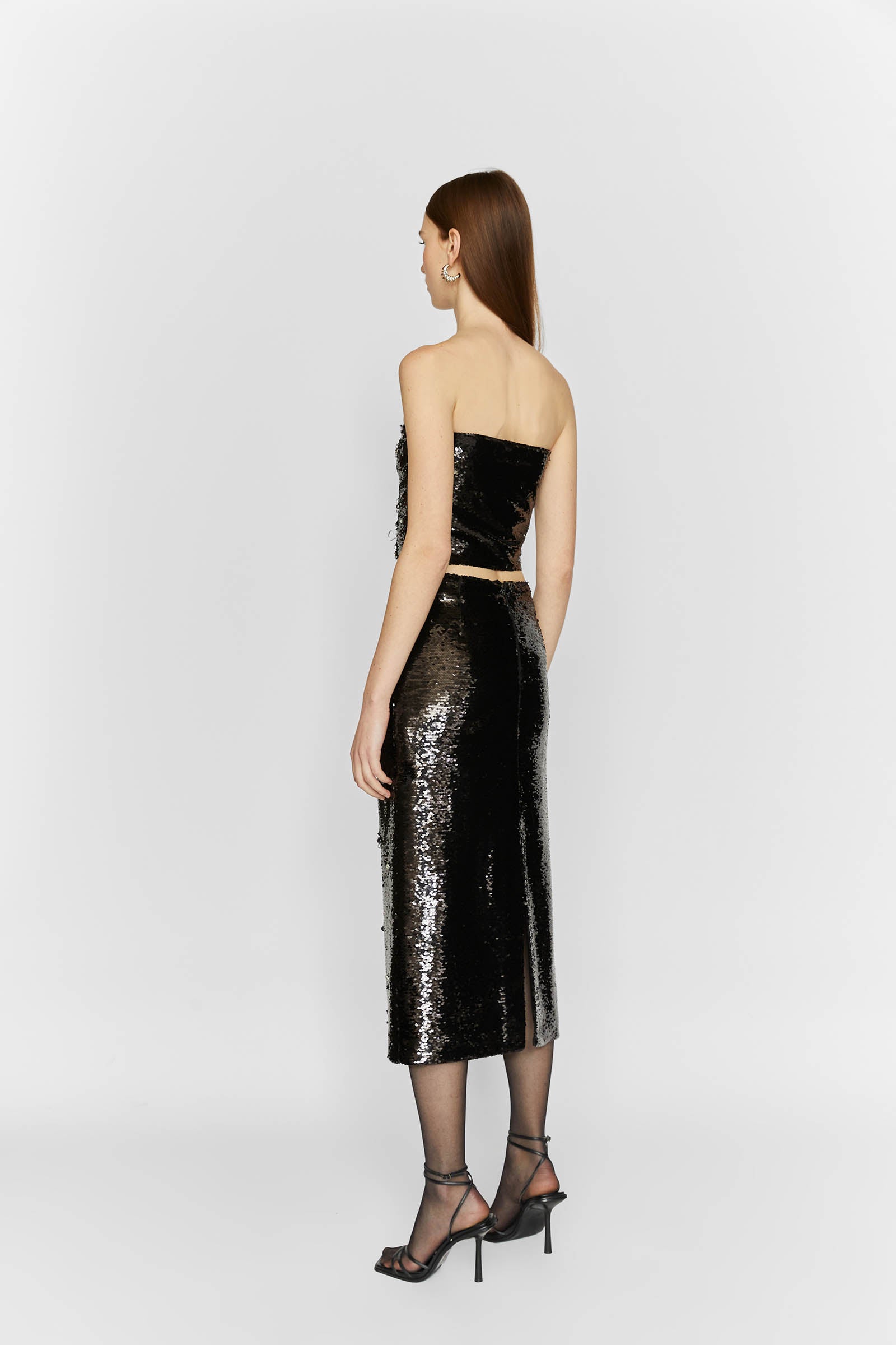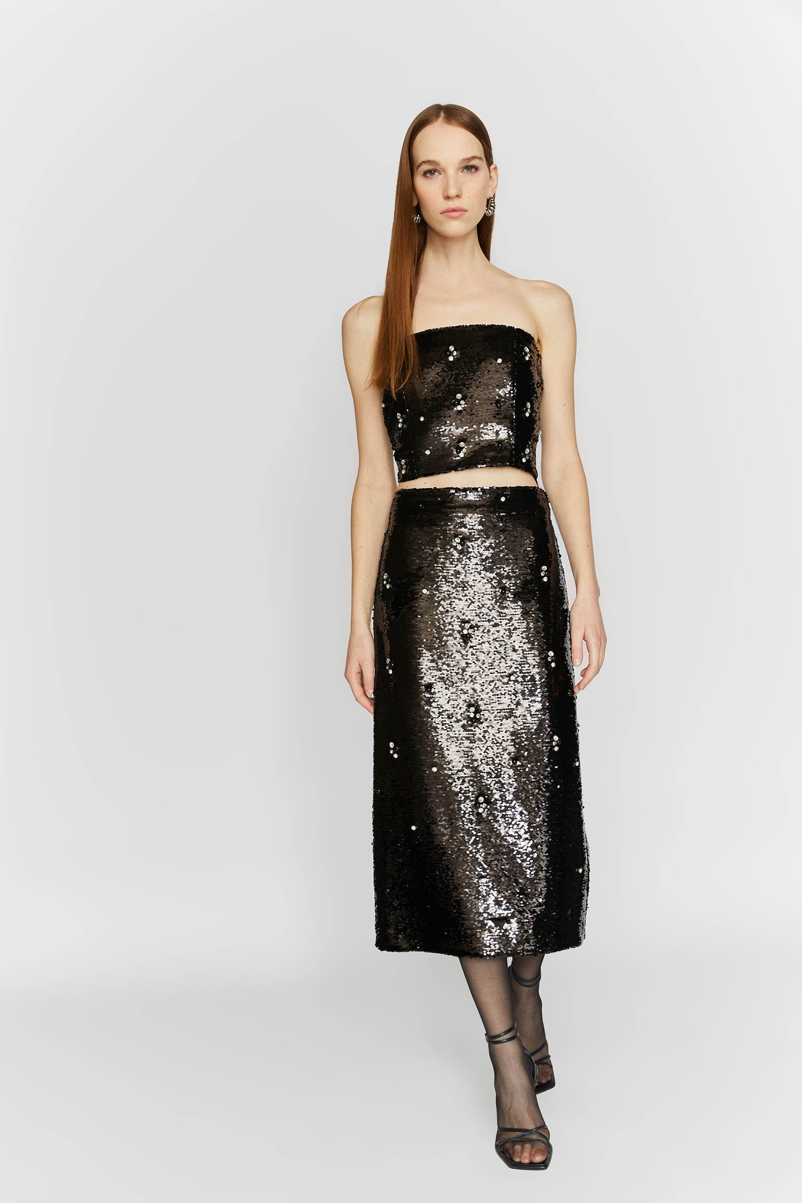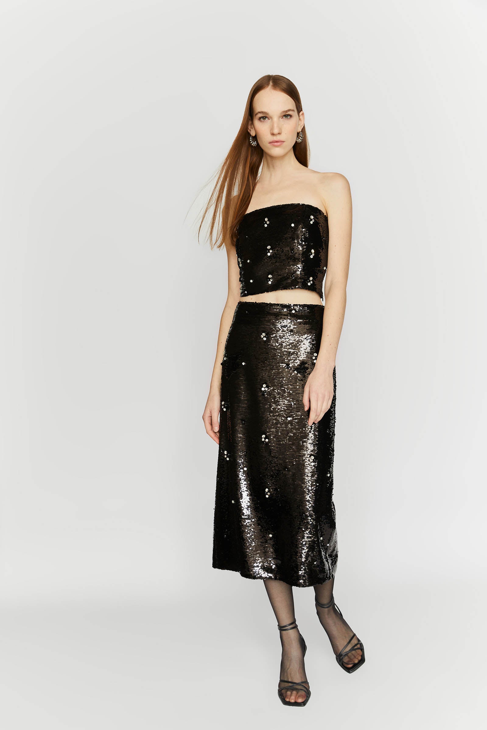SEQUIN BUSTIER WITH STONE EMBROIDERY.