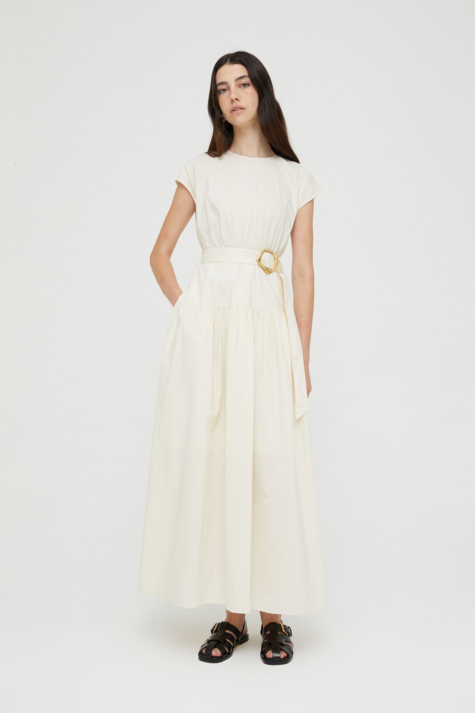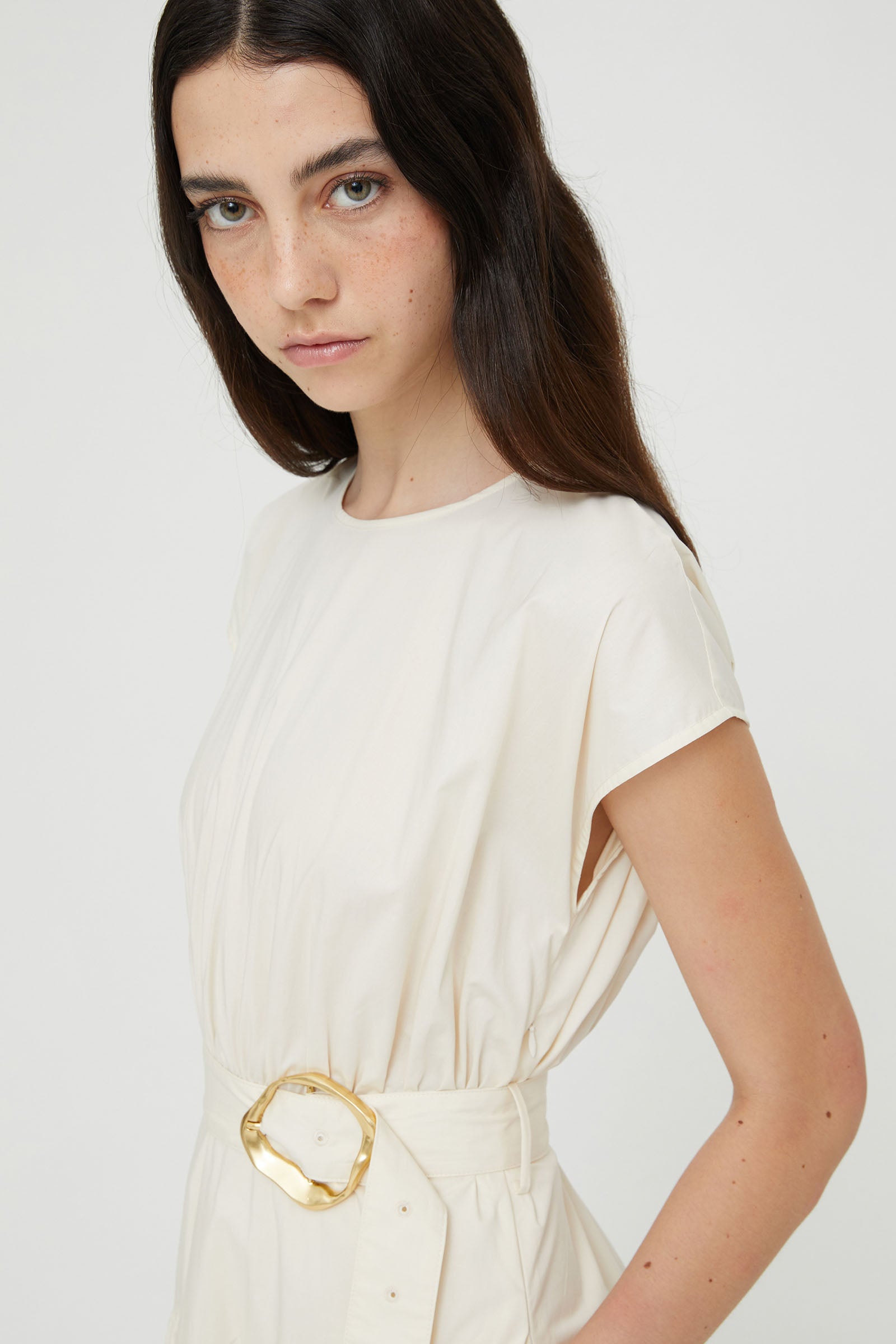 POPLIN DRESS WITH BELT AND MACRO BUCKLE .
