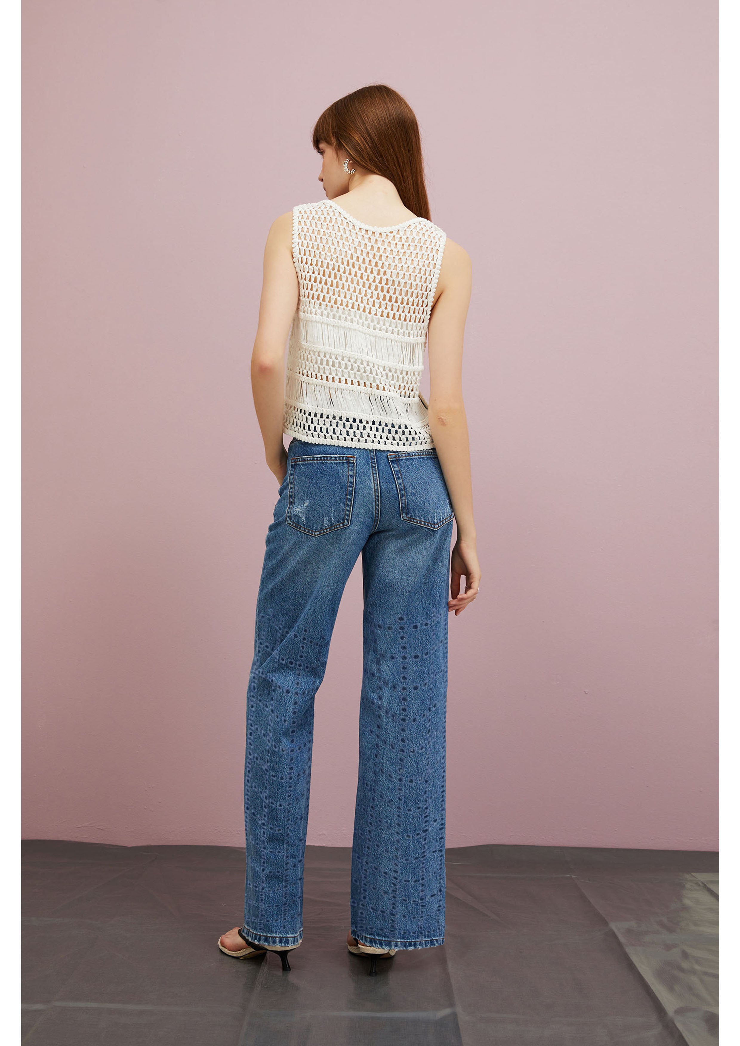 DENIM BRODERIE ANGLAISE WITH CHECK MACRO .