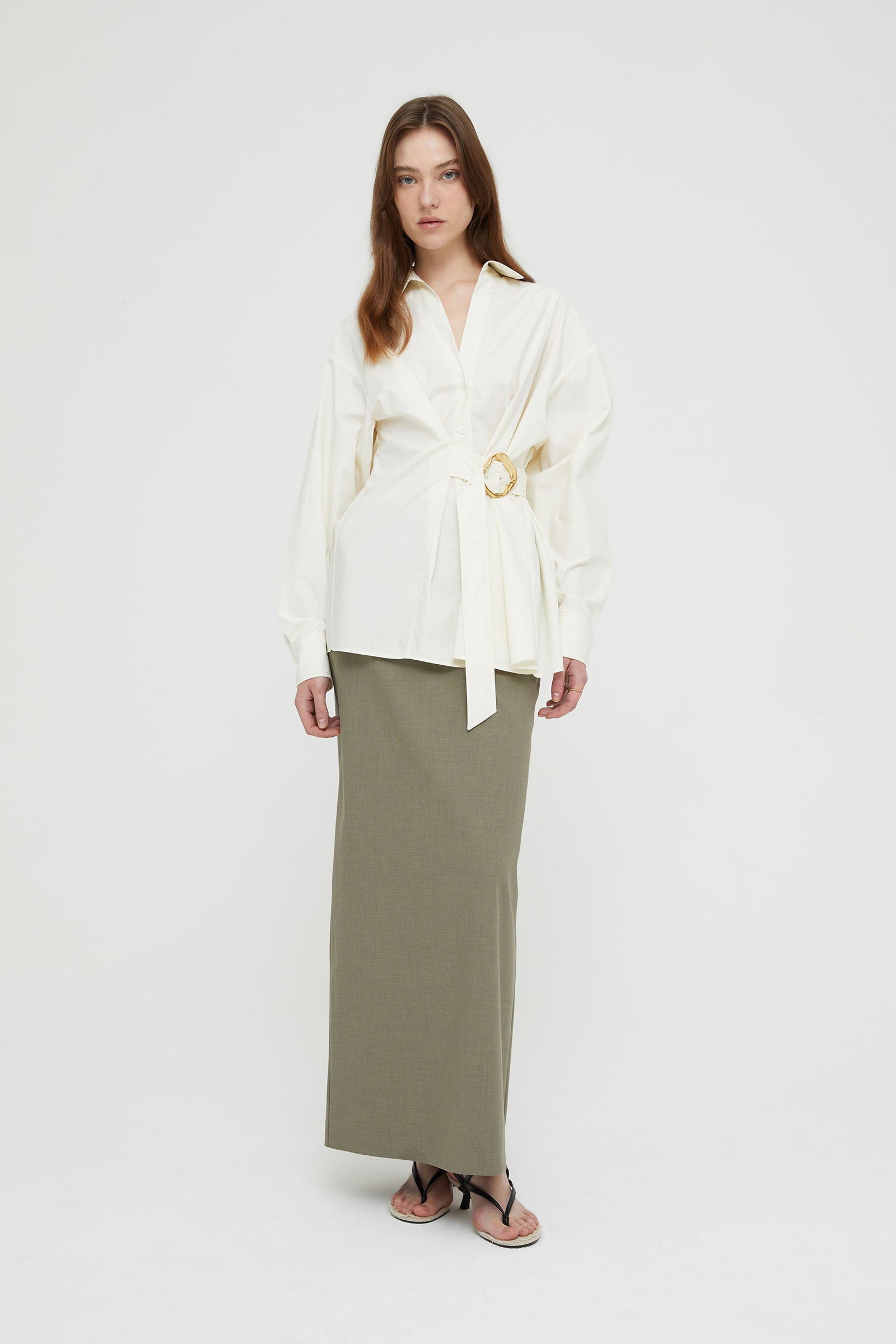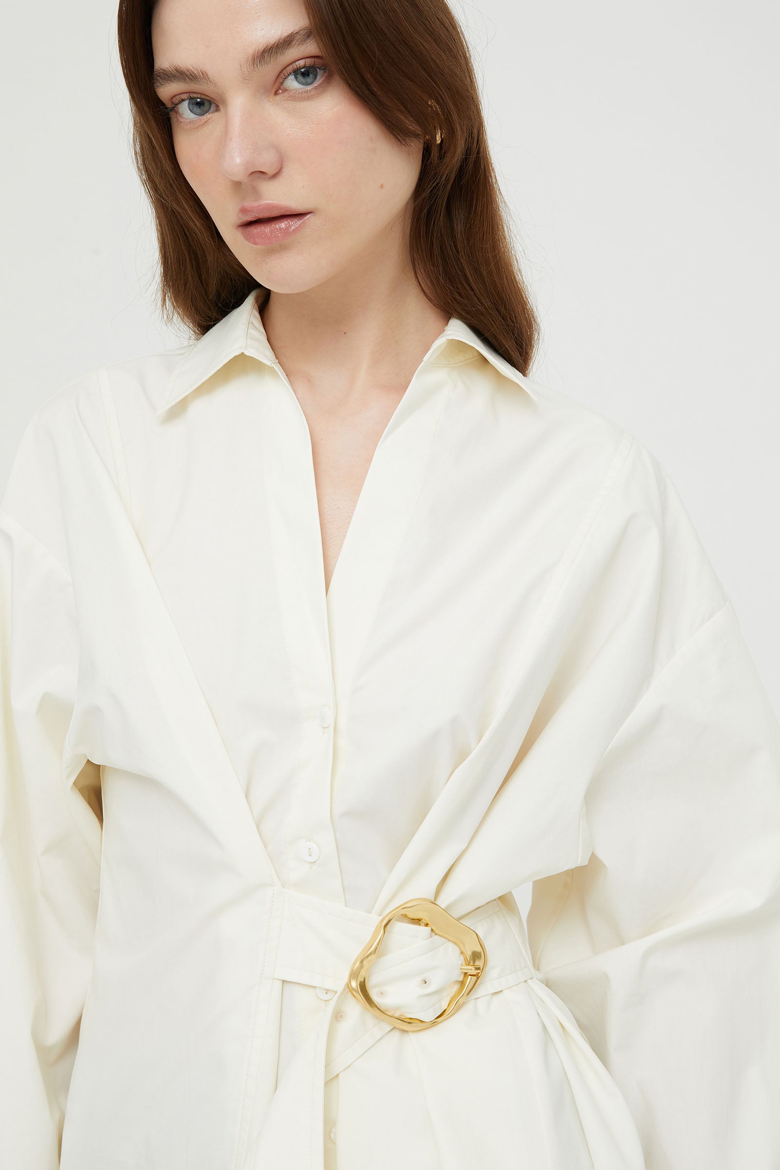 POPLIN SHIRT WITH BELT DETAIL AND MACRO BUCKLE .