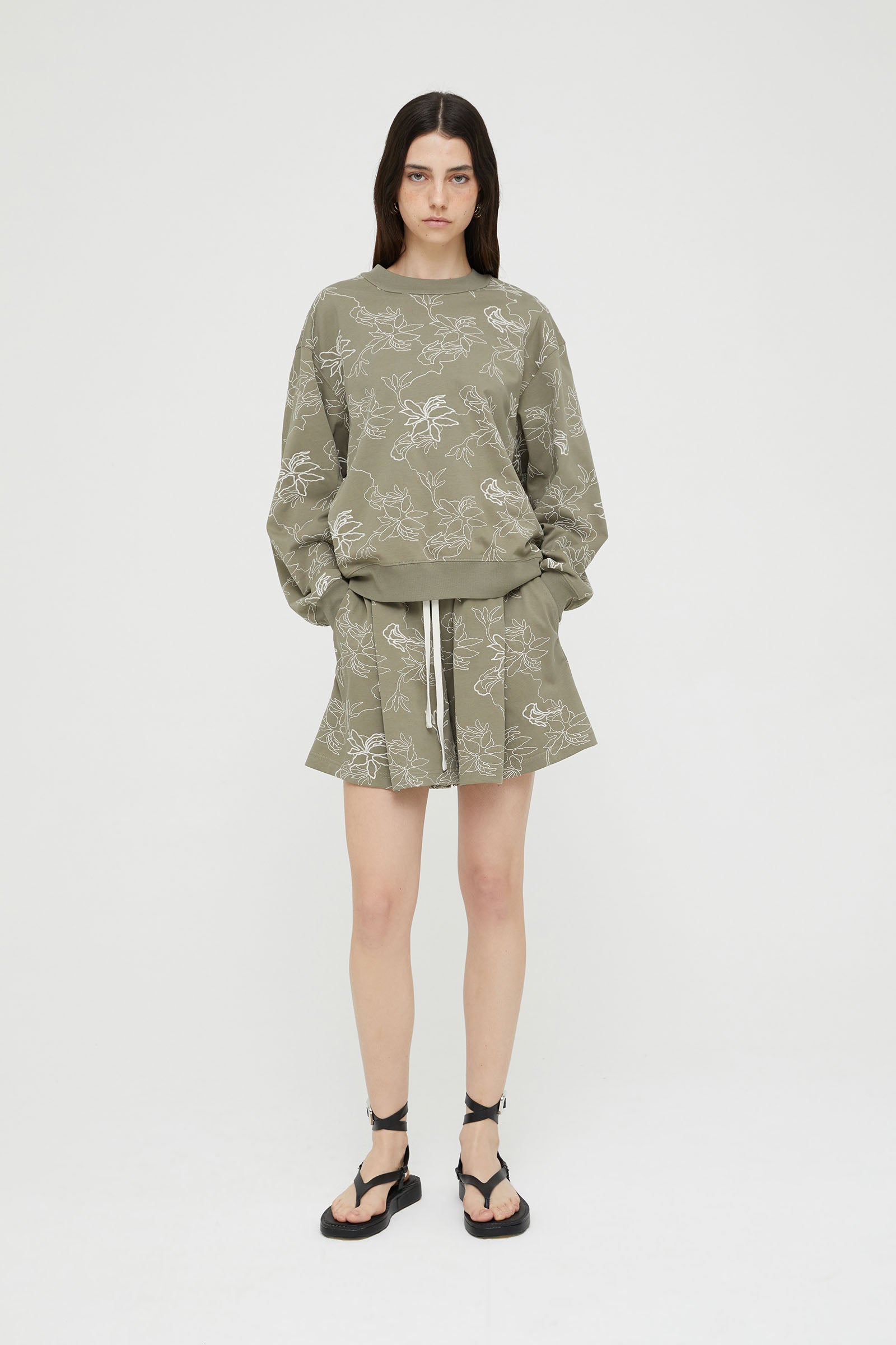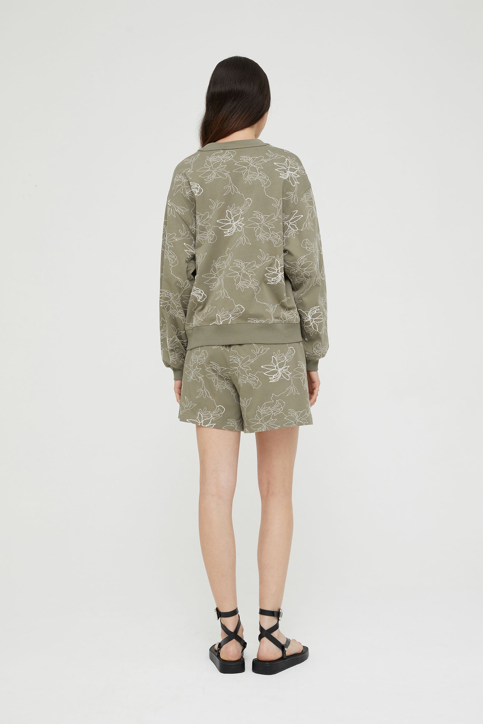 CROW NECK SWEATSHIRT IN COTTON WITH THREAD EMBROIDERY .
