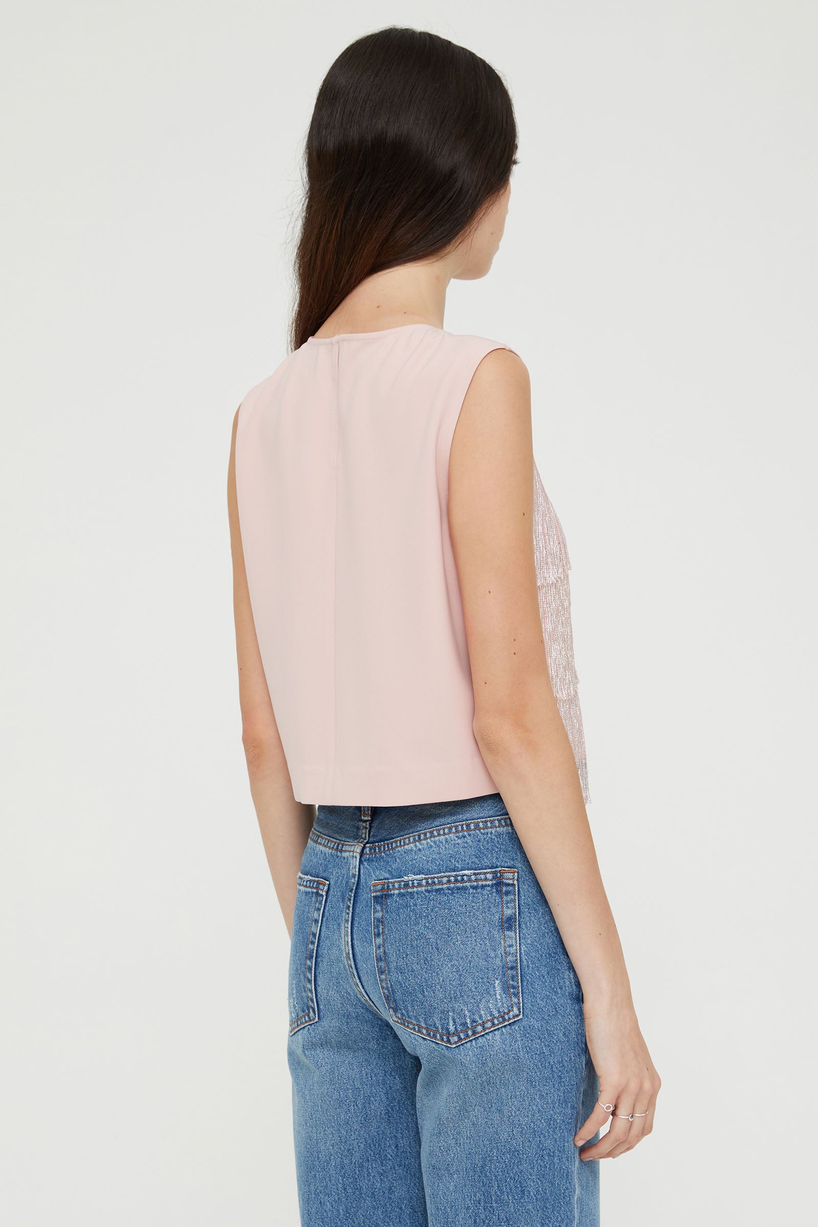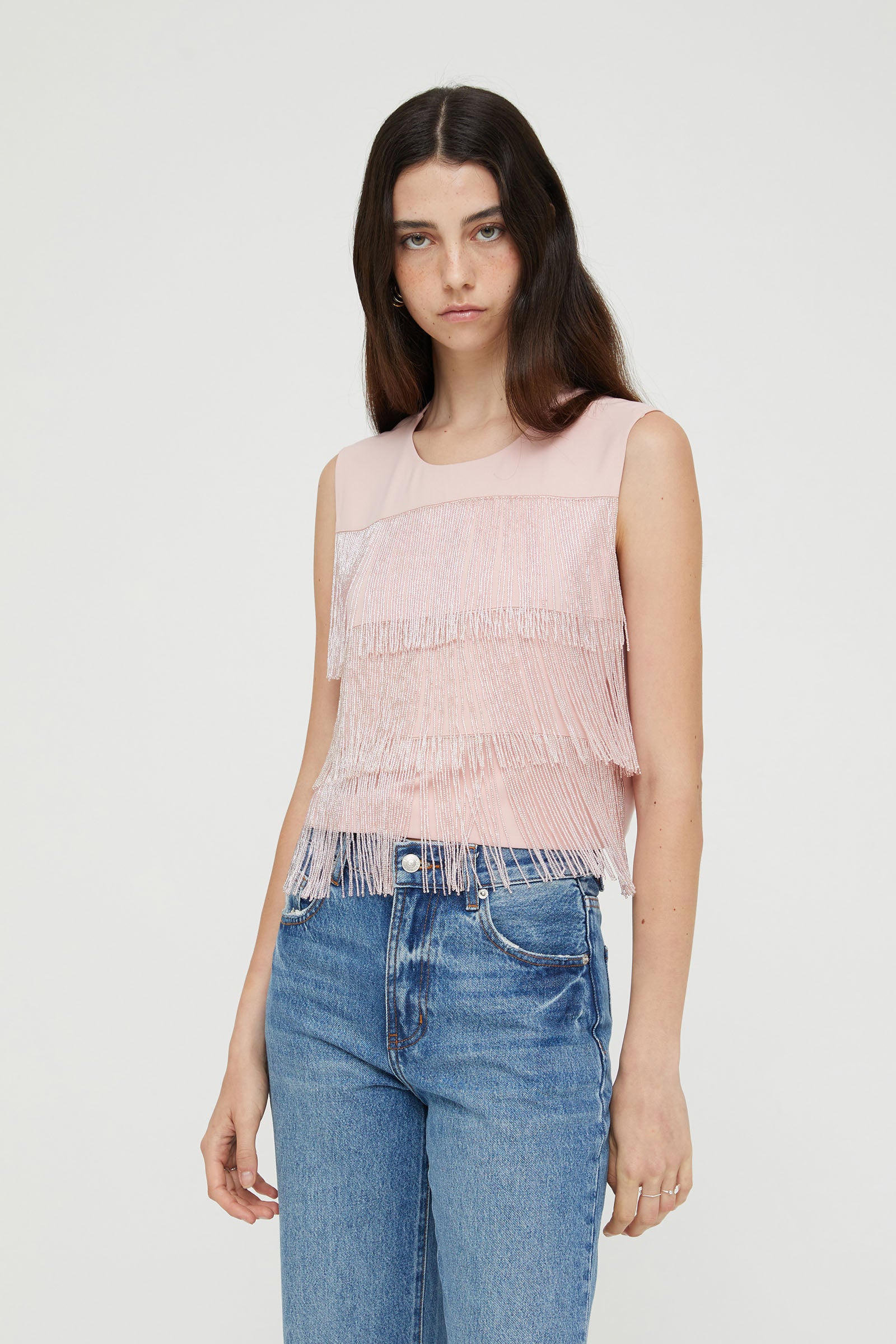 CADY TOP WITH BEADED FRINGE INSERTS .