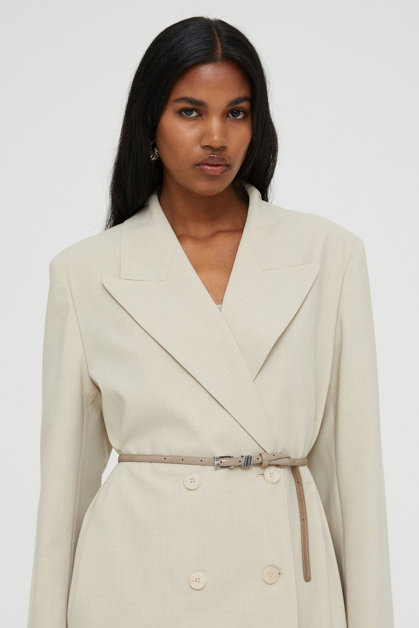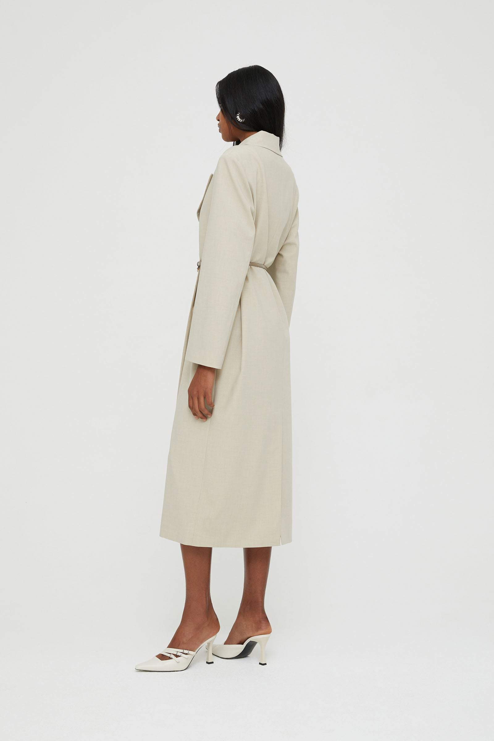 LONG DOUBLE-BREASTED COAT WITH WAIST BELT IN MEN'S FABRIC .