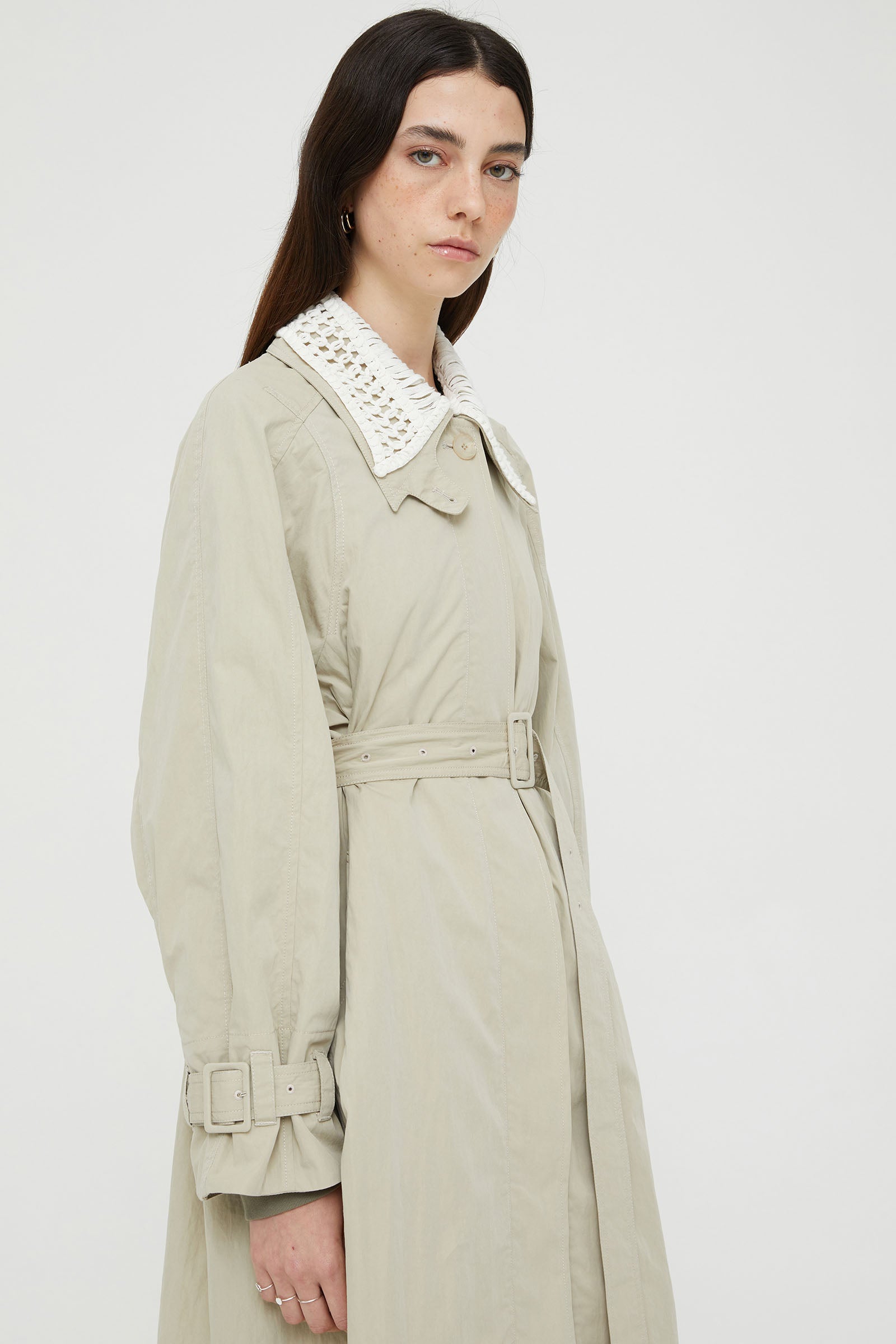 COTTON DUSTER WITH DETACHABLE CROCHET COLLAR .