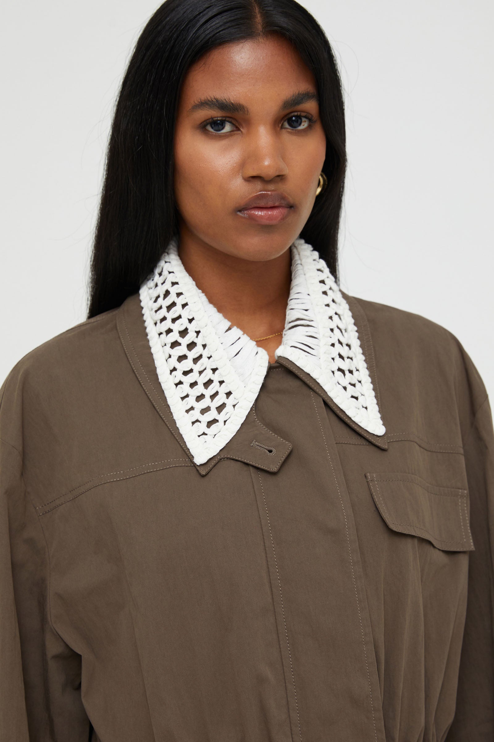 COTTON PARKA WITH DETACHABLE CROCHET COLLAR .