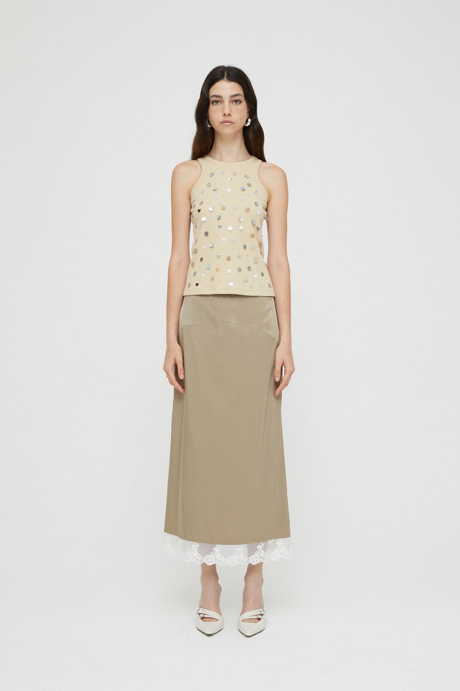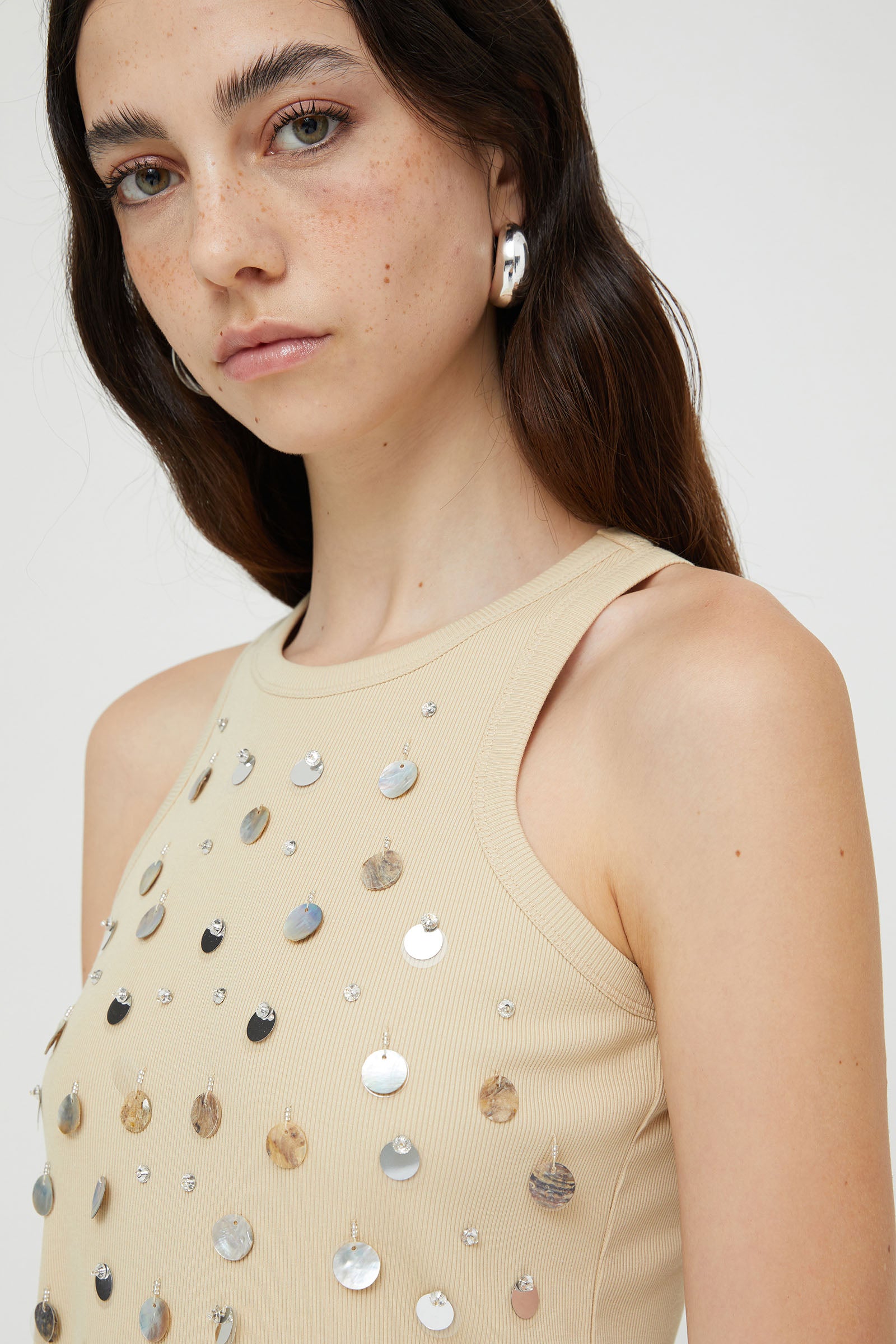 RIBBED TANK TOP WITH MOTHER-OF-PEARL EMBROIDERY .