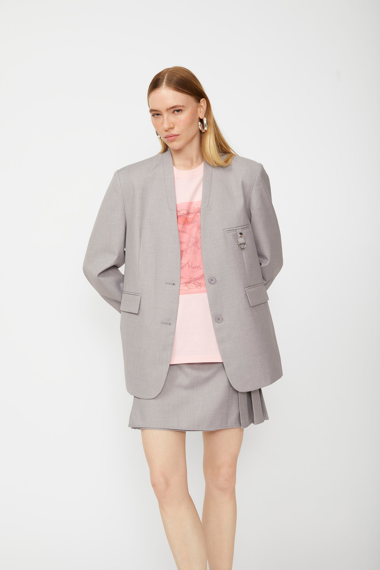 COLLARLESS BLAZER WITH CONTRASTING FABRIC ON THE BACK.