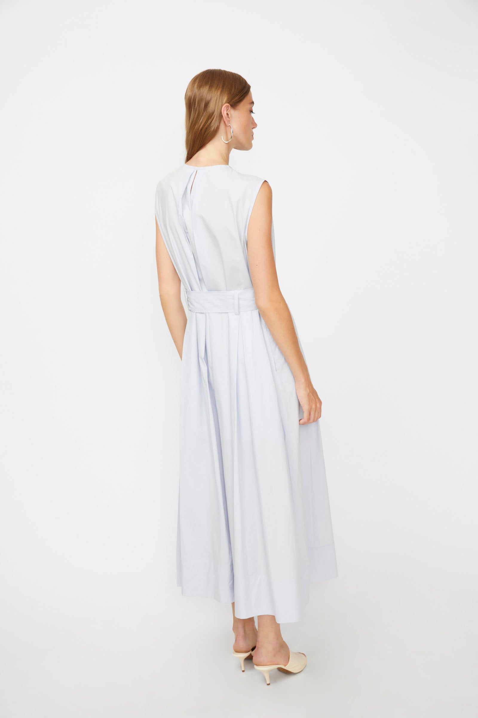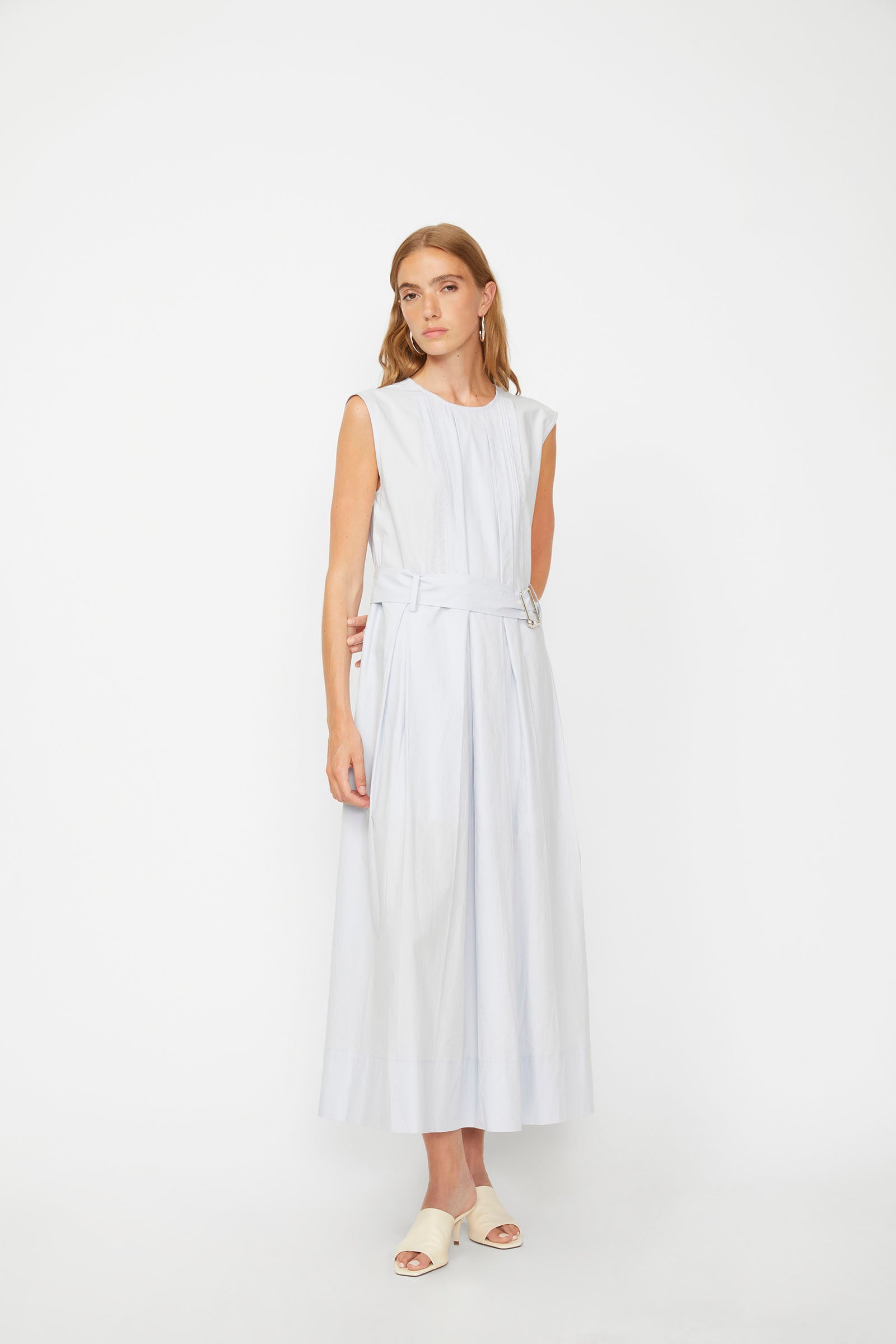 LONG COTTON POPLIN DRESS WITH BELT DETAIL.