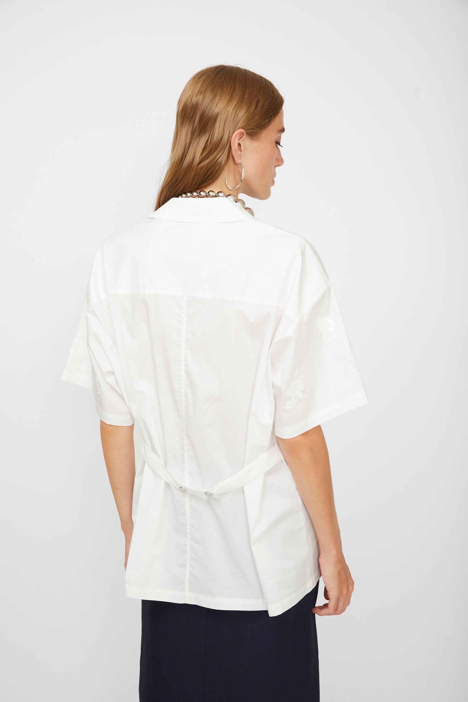 SLEEVELESS SHIRT WITH ZIP AND SEQUINED FLOWER EMBROIDERY.