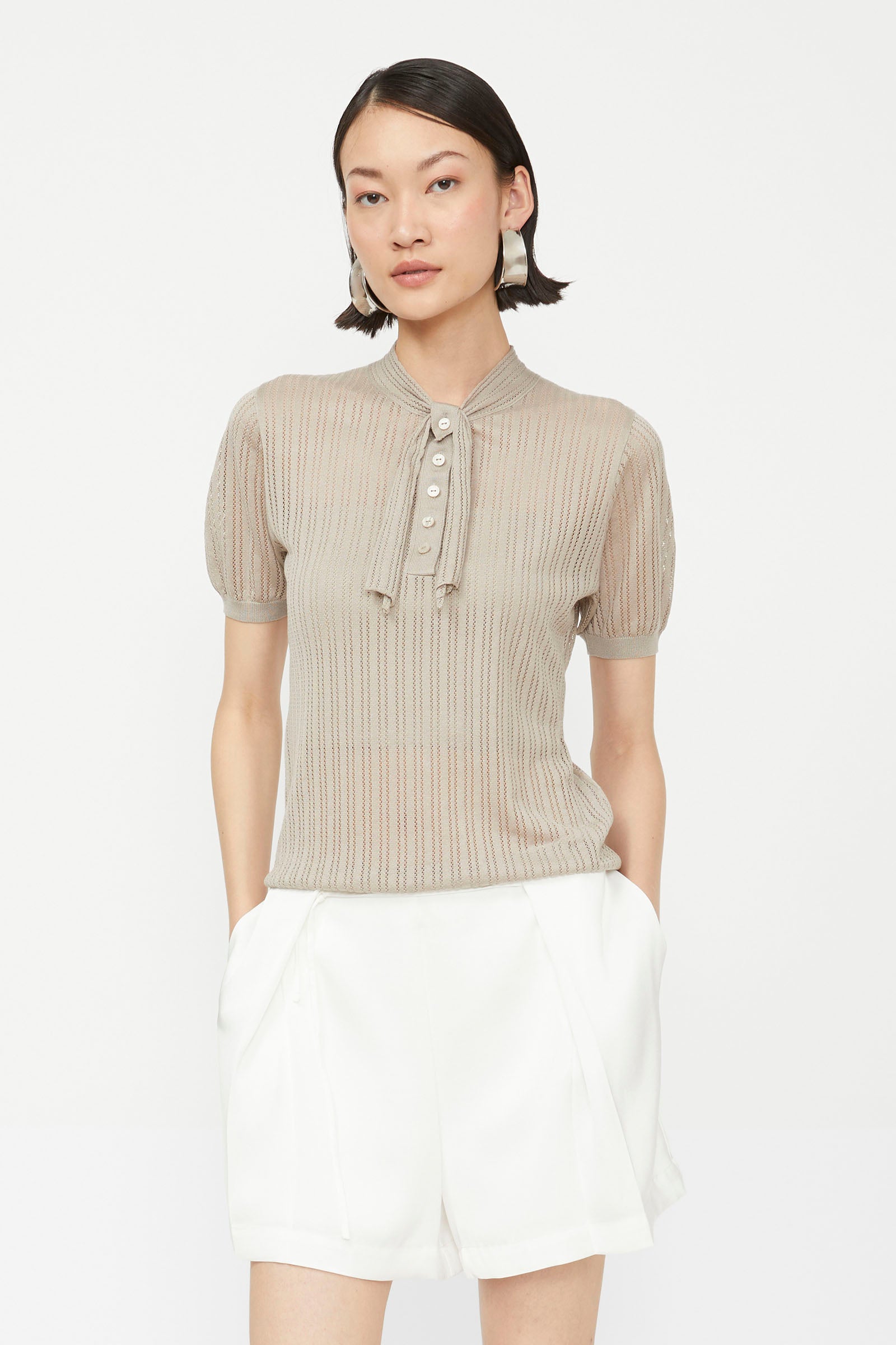 PERFORATED KNITTED POLO SHIRT WITH FOULARD DETAIL.