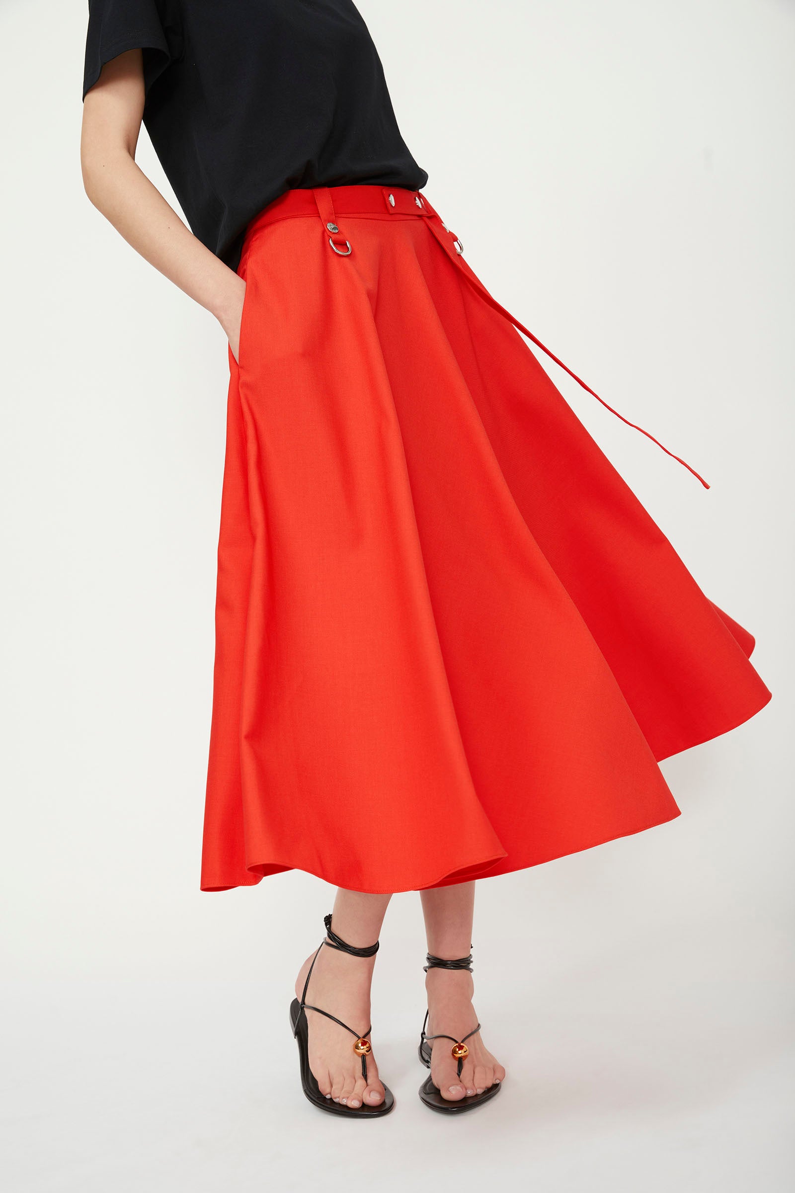 FULL SKIRT WITH METALLIC DETAILS.