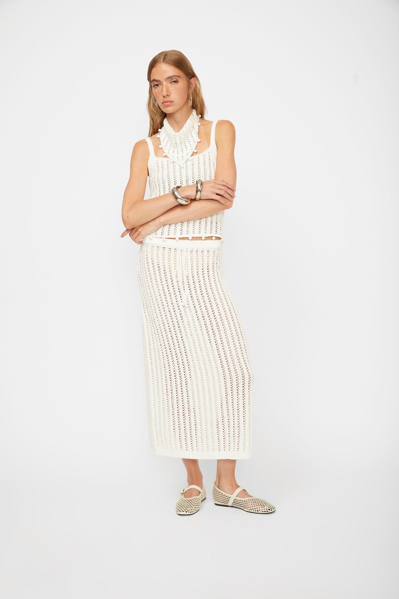 PERFORATED KNITTED SKIRT WITH STRAP.