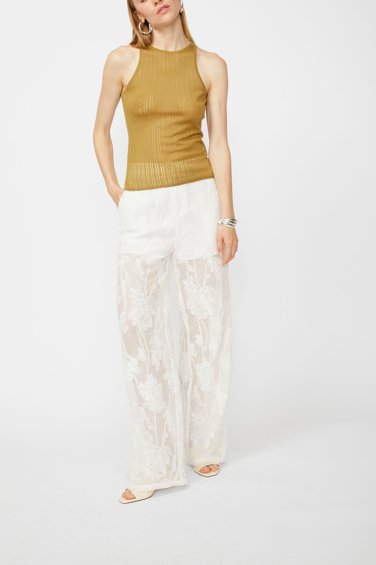 PERFORATED KNITTED TOP AND EMBROIDERED LOGO ON THE FRONT.